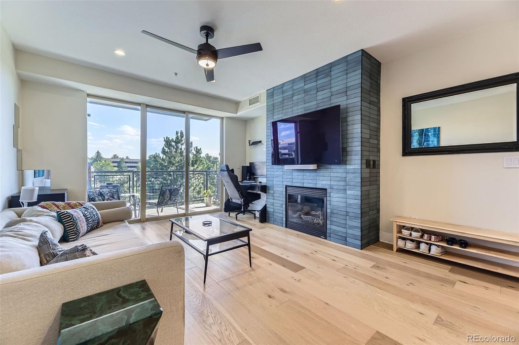 Beautifully Updated Condo with Mountain Views and Premium Finishes Updated one-bedroom, one-bathroom condo with main-level entry and second-story patio offering mountain views. No elevator needed to access 2nd story condo on a quiet access route with minimal foot traffic. Quiet location away from main roads, reduced noise and added privacy. In excess of $25,000 of recent upgrades include new kitchen appliances and washer/dryer, engineered wood flooring in living/kitchen areas, premium carpet in the bedroom, new sinks, countertops, plumbing fixtures, and recessed can lighting installed on a Lutron based "Smart Lighting" system. Updated electrical outlets and switches, new door and cabinet hardware throughout the home. Deeded covered parking in the community garage and a 3.5’ x 8’ locked storage room included. The home is near the RTD Light Rail, Park and Ride, Park Meadows Mall, and has easy access to the I-25/DTC corridor. Community amenities include a pool, hot tub, fitness center, and clubhouse.