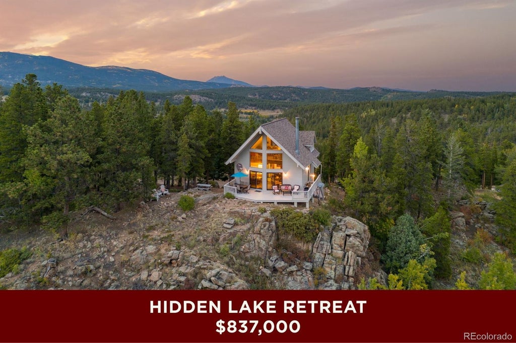 Welcome to Hidden Lake, a private mountain community just north of Ward where residents enjoy fishing, boating & swimming on their own shared alpine lake. A rare property, one of only 10 homes with direct lake frontage, offering a setting that feels both intimate & extraordinary. The home itself carries all the charm of a mountain retreat with striking rooflines, soaring windows that frame endless views & a wraparound deck designed for outdoor living. From this elevated vantage you can take in the expanse of lake & mountains, while a more secluded sitting area among the pines offers a quiet spot for Adirondack chairs & evenings around the fire. Inside, the main level living space is warm and inviting, anchored by a stone fireplace & wood beam accents. A wall of glass opens to the lake & surrounding forest, bringing the outdoors in & filling the room with natural light. The kitchen & dining area flow easily for meals together or hosting friends, while the lower level guest room provides privacy & comfort. The lofted primary bedroom overlooks the living space below & captures sweeping vistas that stretch across the mountains, giving you a sunrise-to-sunset experience each day. For nearly two decades, this home has been a shared retreat for families who treasured its serenity & convenience, and it is now ready to welcome its next chapter. Recent updates include a full exterior repaint, while practical features like a whole-home water filter, well & septic, and electric baseboard heat ensure comfort. The grounds are thoughtfully mitigated & hold the respected Wildfire Partners Certification. Whether launching a kayak, watching wildlife from the porch, or setting off for adventures in the nearby Indian Peaks Wilderness and Brainard Lake, this is a true basecamp for mountain living. Boulder is just 30 minutes away, with DIA under ninety minutes, keeping the world within reach while you enjoy the peace of your own lakeside escape.