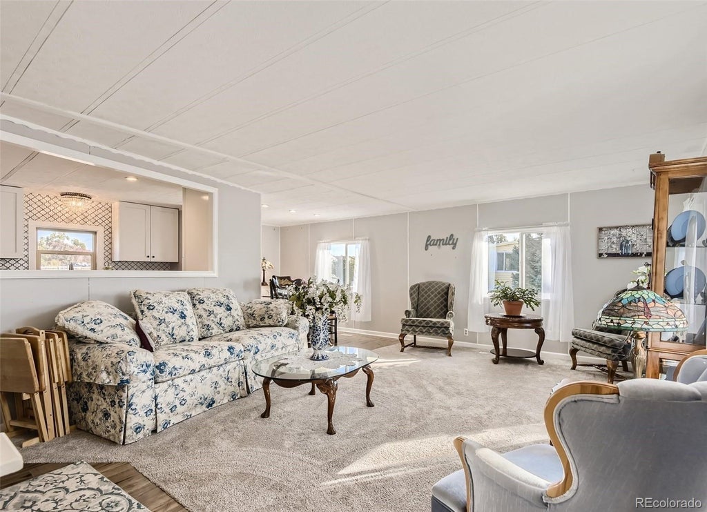 Welcome to this beautifully updated double-wide manufactured home located in the Wolhurst Adult Mobile Home Community. This 2-bedroom, 2-bath residence offers 1,344 square feet of bright, single-level living with an open floorplan, abundant natural light, and thoughtful upgrades throughout. Enjoy a newly installed roof, updated kitchen with granite countertops, refinished bathrooms, and durable vinyl siding. The home features modern appliances including a convection oven, cooktop, dishwasher, washer and dryer, and double-pane windows with treatments. Outside, a covered front porch, garden space, gas grill, and a shed with extra shelving provide comfort and convenience. The attached 2-car carport ensures easy parking, while the $1,425 monthly land lease covers water, sewer, trash pickup, and summer lawn care. Residents enjoy access to community amenities such as a pool, clubhouse, fitness center, pickleball court, and seasonal events, all within walking distance to scenic trails along the Platte River. Located near Aspen Grove and public transit, this home offers both tranquility and accessibility. Buyers must meet community requirements including a minimum credit score of 650 and income at least twice the lease amount. Pets are welcome with restrictions, and rentals or subleasing are not permitted. Lot 148 is a rare opportunity to enjoy affordable, low-maintenance living in a vibrant and welcoming neighborhood. Property is located in an 80/20 senior community living.