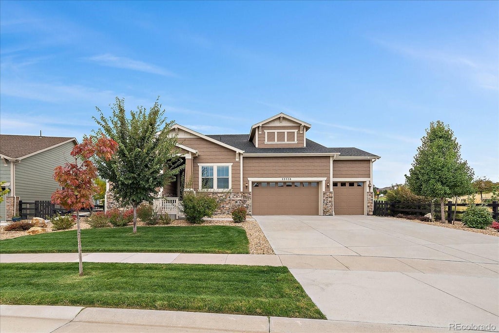 Welcome to this stunning single-family ranch home built in 2019, perfectly situated on a desirable corner lot in a quiet cul-de-sac. Featuring 3 spacious bedrooms with 3 ensuite bathrooms plus an additional 1/2 bath, this home offers modern comfort, style, and functionality. Step inside to find an open, inviting floor plan filled with natural light. The thoughtfully designed layout flows seamlessly from the living area into the gourmet kitchen with KitchenAid appliances and 2 large dining spaces, perfect for everyday living and entertaining. Enjoy Colorado days and evenings on the covered back patio featuring a cozy gas fireplace—a true outdoor retreat for year-round enjoyment and relaxation.