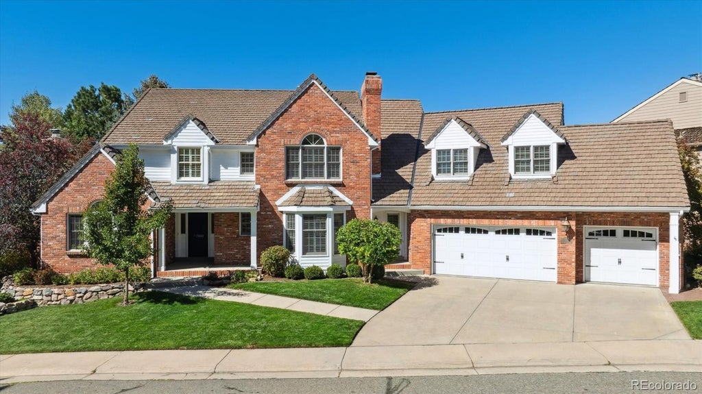 EXECUTIVE HOME in HOMESTEAD AT WILLOWS END: Nestled on a private circle backing to open space with sweeping Front Range views, this stately brick residence blends timeless architecture with modern luxury. A rare layout offers four bedrooms on the same floor—each with en suite bath—plus a private fifth guest suite on the lower level. The expansive primary retreat with private deck, dual walk-in closets, and 5-piece bath. Newly remodeled 2025 gourmet kitchen with custom cabinetry, dolomite counters, large island, walk-in pantry, & GE Café appliances including induction range, dual ovens, vent hood & under counter microwave & dishwasher. Breakfast area opens to a covered deck overlooking the professionally landscaped yard & open space. Control the light and sound throughout the home with plantation shutters & whole house surround system. Refinished hardwood floors connect a bright main level with private office, dining room, living room with tray-ceiling & fireplace, sunken family room with built-in shelves & hearth. 2 powder rooms, a large mudroom with secondary front entry, second stairway to the bonus room above makes this the perfect flex space for a studio, playroom, or secondary home office. Finished walkout basement, designed for entertaining, complete with a wet bar, media center, built-in speakers, & space for billiards. A large 5th bedroom provides separation & privacy for guests. Additional unfinished areas offer a workshop, storage, & mechanical systems, including dual HVAC units, A/C, whole house generator, & utility room. Residents enjoy priority membership application to Homestead in the Willows amenities including pools, tennis courts, community events,& direct trail access to 120 acres of South Suburban open space. Minutes to DTC, Greenwood Village, Streets at SouthGlenn. Served by award-winning Cherry Creek Schools: Homestead Elem, West Middle, Cherry Creek High.
