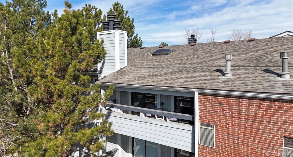 Charming, move-in ready condo at Cherry Grove East. Top-floor end unit with vaulted ceiling and spacious balcony for ideal blend of indoor/outdoor living! Kitchen features gray cabinetry, marble tile flooring, glass backsplash and stainless appliances. Primary corner en suite offers privacy and space. Guest bedroom with nearby bath and laundry balance the floor plan. Washer and Dryer included for your convenience. Covered parking space, plus additional guest parking. Community Pool for a relaxing summer afternoon. Close to I-225, shopping, dining and Light Rail. Welcome Home!