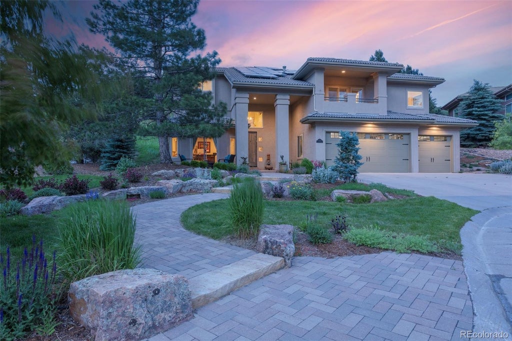 PRICED TO SELL!! Tucked away on a private cul-de-sac and backing to Dakota Ridge Open Space, this exceptional custom home sits on over 1/3 of an acre and offers a rare combination of privacy, luxury, and thoughtful updates. A grand two-story foyer with gleaming hardwood floors and a dramatic staircase welcomes you in. Just off the entry, a main-level study provides a quiet retreat or ideal work-from-home space with access to a covered patio.Upstairs, vaulted ceilings and abundant natural light enhance the open-concept layout. The great room with a cozy gas fireplace connects seamlessly to the formal dining area and gourmet kitchen, featuring newly refinished hardwood floors, granite countertops, tile backsplash, upgraded lighting, and newer appliances. Step outside to your private, fenced patio—perfect for dogs. The elegant primary suite on it's own floor, offers a spa-like five-piece bath with oversized glass block shower, soaking tub, walk-in closet, and a private balcony with views of the red rocks at Arrowhead Golf Course. Two secondary bedrooms share a full bath, and a central loft workspace and well-appointed laundry room with cabinetry and utility sink add everyday convenience.The finished basement features new high-end flooring throughout, a spacious rec/family room, a large guest suite with private access to a full bath, and a versatile flex space perfect for a home gym, media room, or future kitchenette—ideal for guests or multigenerational living. Additional highlights include leased solar panels, a new water heater, professional landscaping with smart irrigation, fresh interior paint, and an oversized three-car garage. All this, just minutes from Chatfield Reservoir, Waterton Canyon, and miles of trails—offering endless recreation and an abundance of wildlife, including deer, turkeys, and bobcats. Colorado living at its finest!