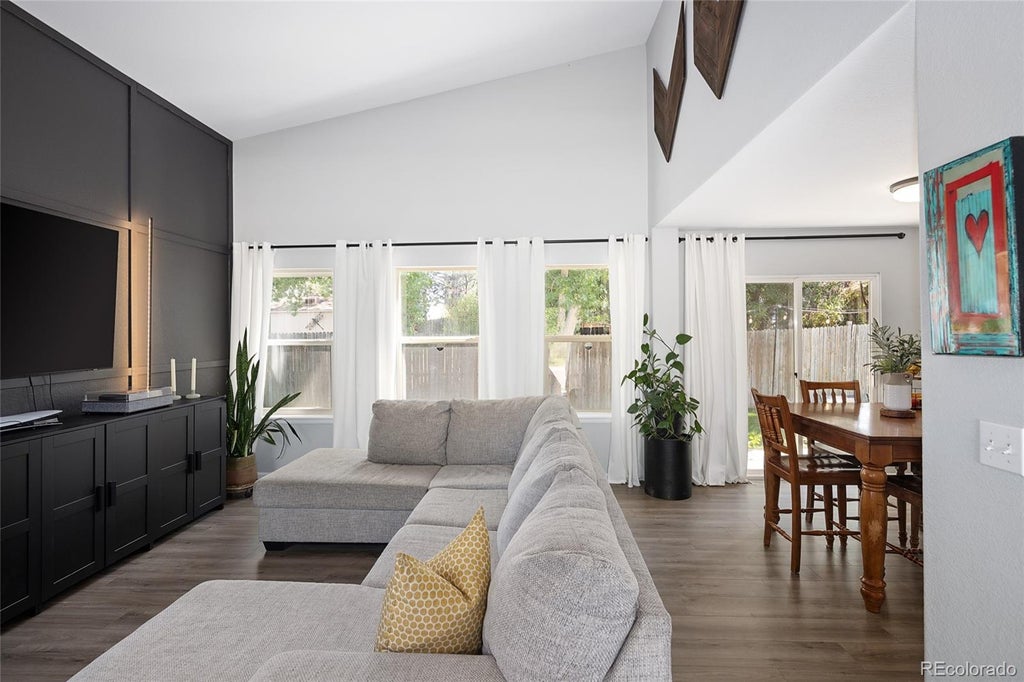**This one checks all the boxes—move-in ready, cool vibes, smart updates, and no HOA!** With southern exposure and a bold black accent wall under soaring vaulted ceilings, the living room makes a statement the moment you walk in. Newer wood-look laminate floors tie it all together, it’s modern and move-in-ready. The kitchen stands out with a chic two-tone design—gray base cabinets and crisp white upper cabinets. Upstairs, the primary suite features dual closets and a private bath, plus two more bedrooms. The finished basement gives you flexibility with a large hangout area and rec room that can be anything you want—game room, gym, media room, plus a bedroom or office. Sitting on an extra-large corner lot and no HOA, this home gives you both freedom and privacy. Major updates are already done for you—new roof (2023), exterior paint (2023), interior paint (2023), and water heater (2022). Conveniently close to E-470 and Jordan, Trader Joe’s, Costco, trails, parks, and great dining—you’re set for both everyday living and weekend adventures.