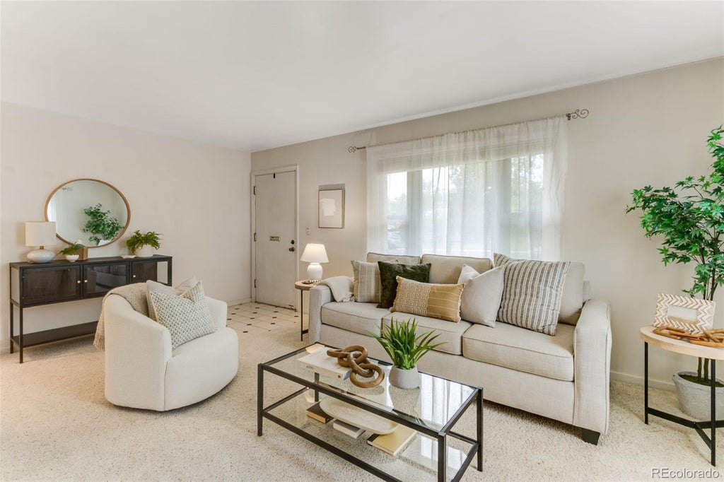 Adorable sunny, south facing Ranch bungalow - nicely appointed and just down the street from Kirkview Park! Nestled in a super convenient location right off Lincoln in central Loveland with an easy flow layout. Eat-in kitchen, fenced spacious yard featuring a comfortable flagstone patio - beautifully maintained and 7,500SF site. 2 Bedrooms and refreshed bright full bathroom at nearly 800 SF total, this cute bungalow is all about ease and convenience. Newer double pane vinyl windows, and a convenient oversized detached single car garage (partially insulated to the east) with a long driveway for additional parking! Includes both front and backyard sprinkler system, fully fenced yard, newer Whirlpool dryer in 2024, central AC, whole home humidifier (around 2000), newer Hot Water heater (around 2023) and newer garage opener. Includes all appliances, move-in and enjoy + no HOA! Enjoy PULSE, Loveland's high-speed fiber optic ISP. All patio furniture stays, shelving, workbench stay in garage and composter on the east side.