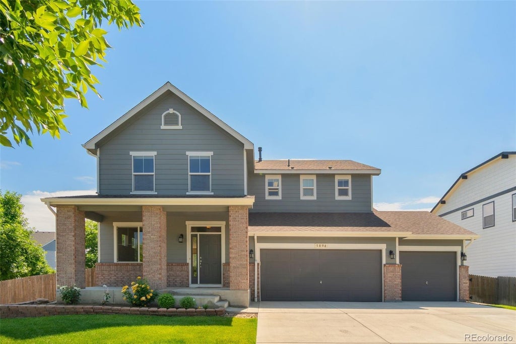 Elegant Timnath Ranch Retreat! Step into this meticulously maintained home, where every detail has been thoughtfully curated for comfort and style. Freshly painted interiors and rich acacia wood floors throughout the main living areas create a warm and inviting atmosphere. The gourmet kitchen boasts granite countertops, double ovens, a gas cooktop, and abundant cabinetry, making it a chef's delight. Adjacent to the kitchen, a versatile "command center" offers a perfect space for a home office or additional storage. Relax in the spacious primary suite, featuring a 5-piece bath with a jetted tub and a walk-in closet. The home also includes a cozy gas fireplace with a stone surround, formal and informal dining areas, and a formal living room that can serve as a reading nook or music space. Practical amenities like tile flooring in all bathrooms and the laundry room, three linen closets, and a three-car garage add to the home's functionality. The furnace was replaced in 2024, ensuring modern efficiency. Outside, the expanded wrap-around patio provides a shaded retreat for afternoon barbecues, while the covered front porch offers a serene spot to enjoy colorful sunsets. A full front and back sprinkler system keeps the landscaping lush and green. Located in the desirable South Timnath Ranch community, residents have access to amenities such as a pool with slides, a clubhouse, workout room, basketball courts, and the recently updated Timnath Community Park, featuring pickleball courts, a dog park, an accessible playground, and open fields for various activities. This home offers a perfect blend of elegance, comfort, and community. Don't miss the opportunity to make it yours. Schedule a private tour today and experience all that this exceptional property has to offer. Home warranty included for no worries!
