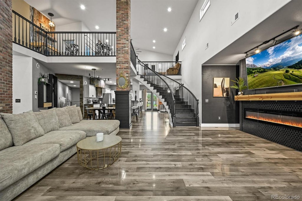 Discover your dream home in the exclusive Berthoud Lake Ranchettes community! This stunning property offers breathtaking mountain views and extraordinary design! Entertain guests in the two-story great room, featuring a dramatic serpentine stairway, a well-appointed kitchen, and a lower-level covered deck with a gas BBQ line. The main-level suite is generous, boasting a luxurious five-piece bath and an enormous walk-in closet and access to the quiet oasis out back - beautifully landscaped, private, tranquil water feature… relax and enjoy. Upstairs, enjoy a spacious loft and an extensive deck with expansive views. Unique architectural features and beautifully modern updates throughout set this home apart from the rest. BONUS - A special hobby/work room is located off the garage, complete with its own outdoor access and half bath! It is currently set up as a salon with waiting room! Dream and make it your own! The two-car garage also includes a large work area. Move-in ready and situated on a half-acre with access to Berthoud Lake, this home offers country serenity while being close to town. Minutes from shopping, Carter Lake, Estes Park, and more outdoor adventures. Don't miss out—this home is a must-see!