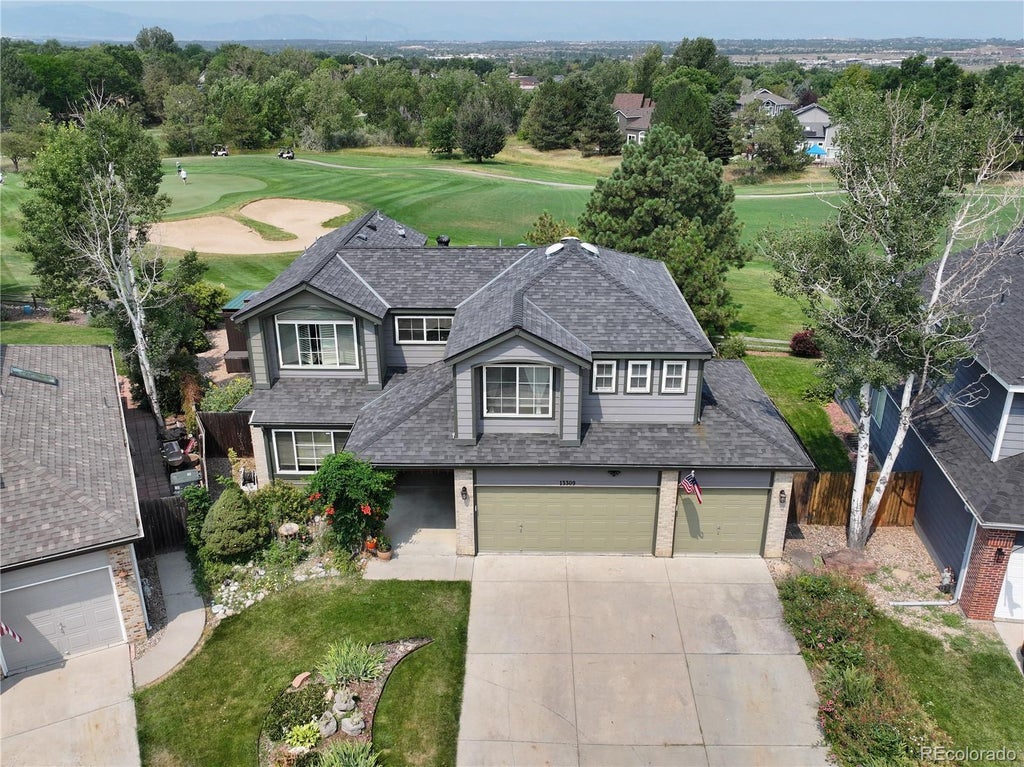 Tucked into the Village at Hunters Glen, this beautiful two-story home backs to the 15th hole of the Thorncreek Golf Course—offering sweeping greenbelt views you’ll enjoy year-round from the expansive covered deck. Inside, the thoughtful layout features soaring ceilings, warm natural light, and nearly 3,000 finished square feet. Also, many of the rooms have fresh paint! The kitchen is a standout with granite counters, new stainless steel stove, pantry storage, and a breakfast nook overlooking the course. A spacious family room with vaulted ceilings, a gas fireplace, skylights and large windows makes it the heart of the home. Upstairs, you'll find four bedrooms—including a large primary suite with vaulted ceilings, a walk-in closet, and a luxurious 5-piece bath. The finished basement is an entertainer’s dream, complete with a large recreation room (pool table is included!) and a ¾ bath. Other highlights: 3-car garage, whole house water purifier, attic fan and newer furnace & air conditioner. You’re steps from community amenities like a pool, clubhouse, tennis courts, trails, and playgrounds. Trail Winds rec center (not part of the HOA fees) is less than 5 minutes away and also offers great amenities! Easy access to I-25, Topgolf, The Orchard, and Denver Premium Outlets means shopping and dining are just minutes away. The high speed light rail station that leads directly to Union Station in Downtown Denver is only about a mile away! Experience the lifestyle of one of Thornton’s most sought-after neighborhoods with rare golf course living right out your back door! You will love this home and all that it offers!