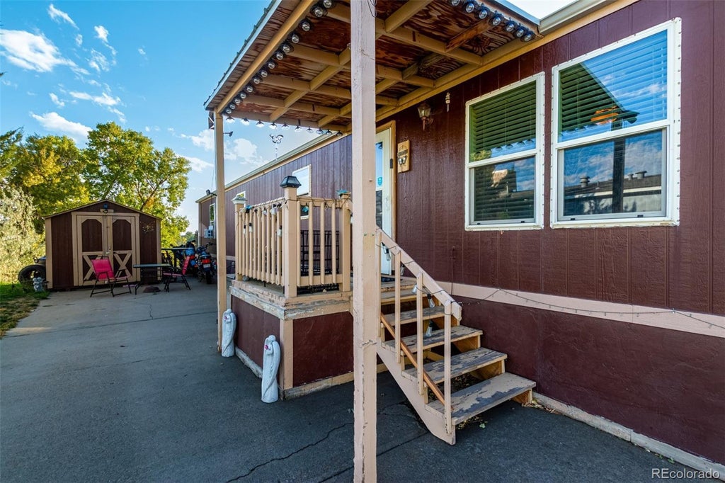 Welcome to this spacious 2-bedroom, 2-bath home in the Redwood Estates community! From the moment you arrive, the covered front porch, long driveway, and charming exterior make this home inviting and functional. Step inside to an open and comfortable living area with vaulted ceilings, large windows, and warm wood-style flooring that creates a cozy atmosphere. The kitchen is both stylish and practical, featuring rich cabinetry, ample counter space, and white appliances—including a dishwasher, refrigerator, range, and microwave. The adjoining dining area is perfect for everyday meals. The generously sized primary suite offers a peaceful retreat with a private bath that includes dual sinks, a soaking tub, and a walk-in closet. The additional bedrooms provide flexibility for a home office or hobbies. A separate laundry area with washer and dryer adds everyday convenience. Enjoy outdoor living with a beautiful yard, patio space, and a storage shed for all your extras. Enjoy your community amenities including a Clubhouse, Playground, Soccer Field, Swimming Pool and RV Storage. Located near shopping, dining, and public transit, plus easy access to I-25 and I-36.