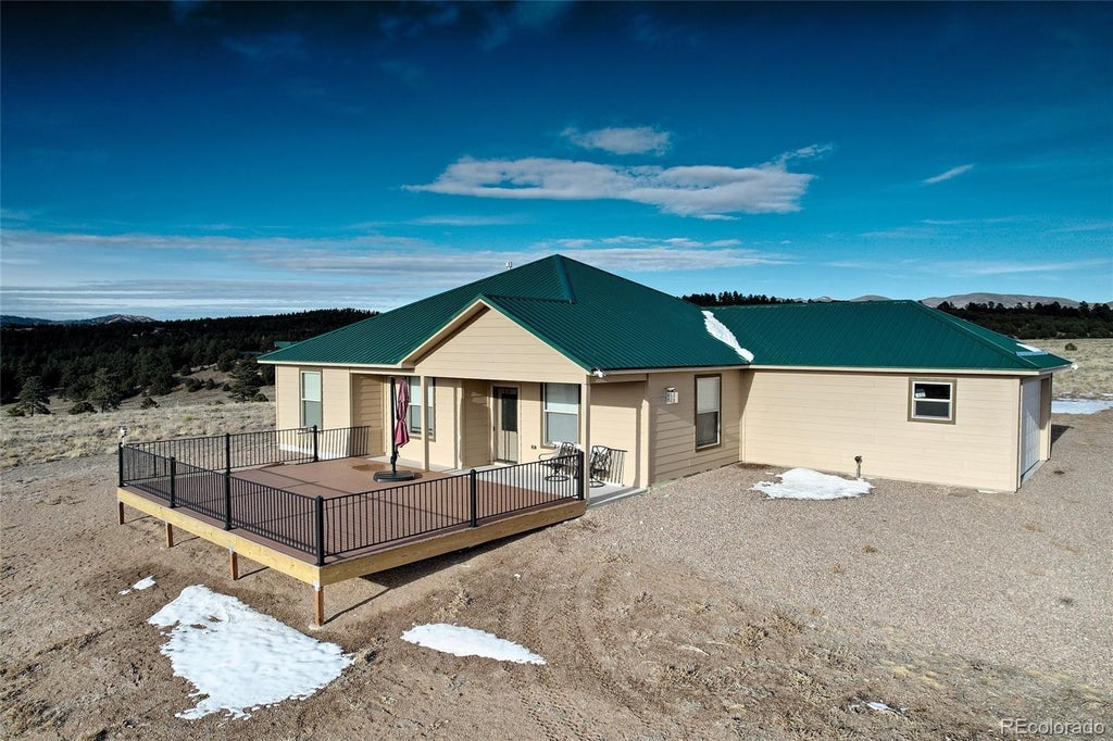 Discover Your Dream Mountain Home in Westcliffe, Colorado! Are you searching for a stunning mountain retreat that seamlessly blends modern living with breathtaking views? This newly built 2023 ranch-style home in Westcliffe, Colorado, offers the perfect combination of comfort, privacy, and natural beauty. This 1,672 sq. ft. home features 3 bedrooms and 2.75 baths, offering ample space for family and guests. A standout feature is the dual primary suites, each with a private bath—ideal for multi-generational living or hosting visitors. The open-concept layout, complemented by 9-foot ceilings, creates a bright and airy feel, while the energy-efficient kitchen is designed for both casual cooks and culinary enthusiasts, featuring modern, sustainable appliances. Built for Durability & Comfort! Designed to withstand the elements, the exterior boasts Cement/Hardie Board siding and a durable metal roof. Step outside to a spacious deck—perfect for relaxing and enjoying the stunning mountain scenery. Inside, unwind in the luxurious jetted tub, stay cozy by the gas fireplace, and enjoy year-round comfort with propane-forced heat. Walk-in closets throughout the home provide ample storage for all your needs. Expansive Lot & Ample Storage! Situated on 5.13 acres of pristine land, this property offers a perfect mix of tranquility and adventure. The 4-car attached garage plus an additional 2-car outbuilding ensure plenty of space for vehicles, tools, and outdoor gear—ideal for those who love the outdoors.