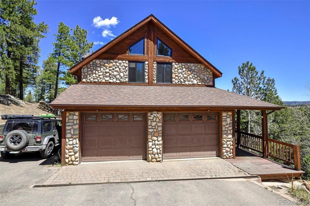 Escape the bustle of city life while staying minutes from Woodland Park in this beautifully designed custom mountain home located in the scenic Rosewood Hills subdivision. Nestled on a 0.73-acre wooded lot with views of Pikes Peak, this 3-bedroom, 3-bathroom home offers the perfect balance of luxury, comfort, and mountain charm. Originally built in 2001 and thoughtfully remodeled in 2018, this 2,639 sq ft residence maximizes its lot with a unique three-story layout that delivers style, space, and stunning scenery. Interior Features: Custom kitchen with quartz countertops, induction stove/oven, and new LG dishwasher-Samsung black stainless steel refrigerator with bottom freezer & icemaker-New custom stainless steel farmhouse sink and abundant cabinetry for storage New LG washer & dryer included - Warm and quiet cork flooring throughout home - Wood railings and accents, vaulted ceilings, and custom wood blinds - Spacious primary bedroom with private balcony, large walk-in closet + secondary closets Luxurious 5-piece ensuite bath with soaker tub and pine finishes - Versatile home office/guest room with Murphy bed Multiple finished crawlspaces for extensive extra storage - Outdoor Living: Large back deck perfect for entertaining or relaxing in your private hot tub (included!) Surrounded by mature trees, sloping terrain, and gorgeous mountain views Quiet and private setting in a well-maintained community with an active HOA - Location Perks: Located just outside the city limits of Woodland Park, this property offers a more tranquil, mountain-living feel with larger lots and fewer city-style restrictions. Enjoy proximity to restaurants, shopping, hiking trails, and outdoor recreation—while returning home to peace and nature. Whether you're searching for a custom Colorado mountain home, a home near Pikes Peak, or a peaceful Woodland Park real estate opportunity, this home offers it all. Schedule showing today and experience true mountain living with modern comforts.