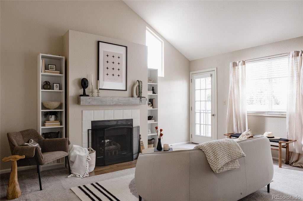 Welcome to Garrison Lakes! This 2-bed, 2-bath condo is filled with light and style, featuring soaring vaulted ceilings and an open floor plan anchored by a cozy gas fireplace. The updated kitchen is modern and functional, complete with stainless appliances and plenty of storage. The spacious primary suite offers vaulted ceilings, a walk-in closet, ensuite bath with a soaking tub, and private balcony access. The second bedroom also has vaulted ceilings, its own balcony, a walk-in closet, and a built-in loft—perfect for an office, guest space, or extra storage. Enjoy the convenience of in-unit laundry with washer/dryer included, plus two balconies (one with a storage closet). A newer furnace and A/C (2020) add peace of mind. With ample parking for you and your guests, and a location close to Old Town Arvada, shops, dining, and trails, this home is turnkey and stylish. Welcome home