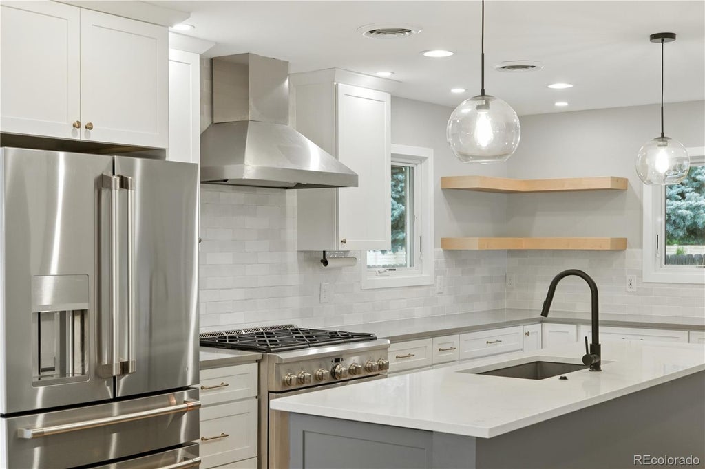 Welcome to your dream home in the heart of Southglenn! This stunningly remodeled 4-bedroom, 3-bath residence offers nearly 3,000 square feet of modern living on an expansive 14,331 square foot lot—perfect for entertaining, relaxing, and making memories. Three bedrooms are conveniently located on the main level—an incredible and rare feature that makes everyday living seamless and functional. Step inside and be immediately impressed by the open-concept design and gleaming hardwood floors (2024). At the heart of the home lies the chef’s kitchen—fully remodeled in 2021 with premium stainless appliances, sleek range hood, quartz counters, and designer finishes. Whether you’re whipping up a weeknight dinner or hosting a dinner party, this kitchen is built to inspire your inner gourmet. Unwind in the cozy living room with its stylish fireplace (2021 remodel), or retreat to the primary suite oasis, where a luxuriously renovated bathroom (2023) brings spa vibes home—complete with modern tile work, upgraded fixtures, and a space designed for relaxation. The lower level expands your lifestyle with a versatile layout—featuring a non-conforming fourth bedroom, a cozy family room overlooking the fireplace, and a bonus room perfect for a game room, fitness space, or home office. With central AC, radiant heating (gas + electric), an upgraded drain line (2025), and eco-friendly solar panels (2020, leased), the home balances comfort with efficiency. Outside, the oversized lot offers room for everything—patio gatherings, raised garden beds (2022), and plenty of storage in the shed and attached garage. And the location can’t be beat—just 15 minutes from the DTC, Southglenn for shopping and dining, and the charm of Historic Old Town Littleton—this is more than just a house—it’s a lifestyle upgrade. From the rare all-main-level bedroom layout to the thoughtfully designed basement, every detail has been carefully updated so you can move right in and start living your dream life.