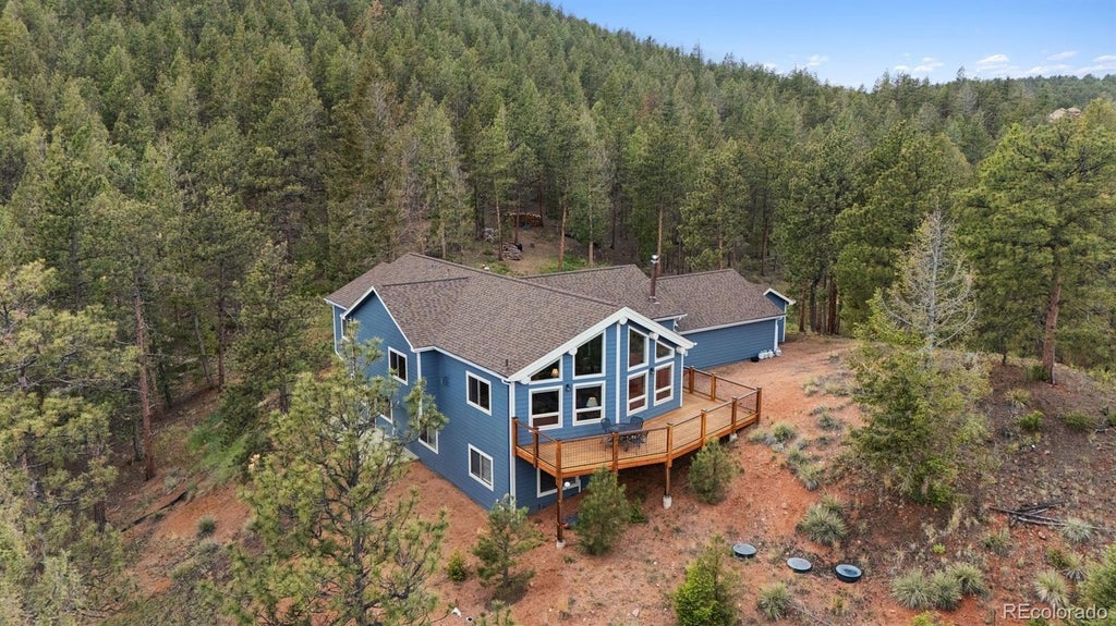 Escape to your own luxury mountain retreat on 35 private acres in Pine, CO, where dramatic rock outcroppings, well-mitigated forest, and amazing mountain views create a rare foothills sanctuary. This 3,659 sq ft home offers 3 bedrooms, 3 bathrooms, a 2-car attached garage, and shed. Thoughtful updates include a new roof, William Hardy siding, new main-level carpet, propane heating, and a beautiful Tigerwood deck with Trex railing—perfect for entertaining or relaxing while enjoying breathtaking sunsets. The open-concept main level features log accents, hardwood floors, and a spacious living room with a floor-to-ceiling stone fireplace and wall of windows framing the views. The vaulted kitchen offers a live-edge bar, abundant cabinetry, and a secondary dining area sharing the fireplace, with a formal dining room nearby. Retreat to the primary suite with stunning views, walk-in closet, and spa bath with soaking tub, walk-in shower, and dual sinks. The walk-out basement includes a family room, two bedrooms, full bath, utility/storage space, and large flex room. Neteo internet connected, Starlink available. Easy access to Denver, Conifer, Evergreen, the South Platte River, Staunton State Park, and Hwy 285 for year-round recreation. Visit: https://homes.livsothebysrealty.com/29004amerindspringstrail