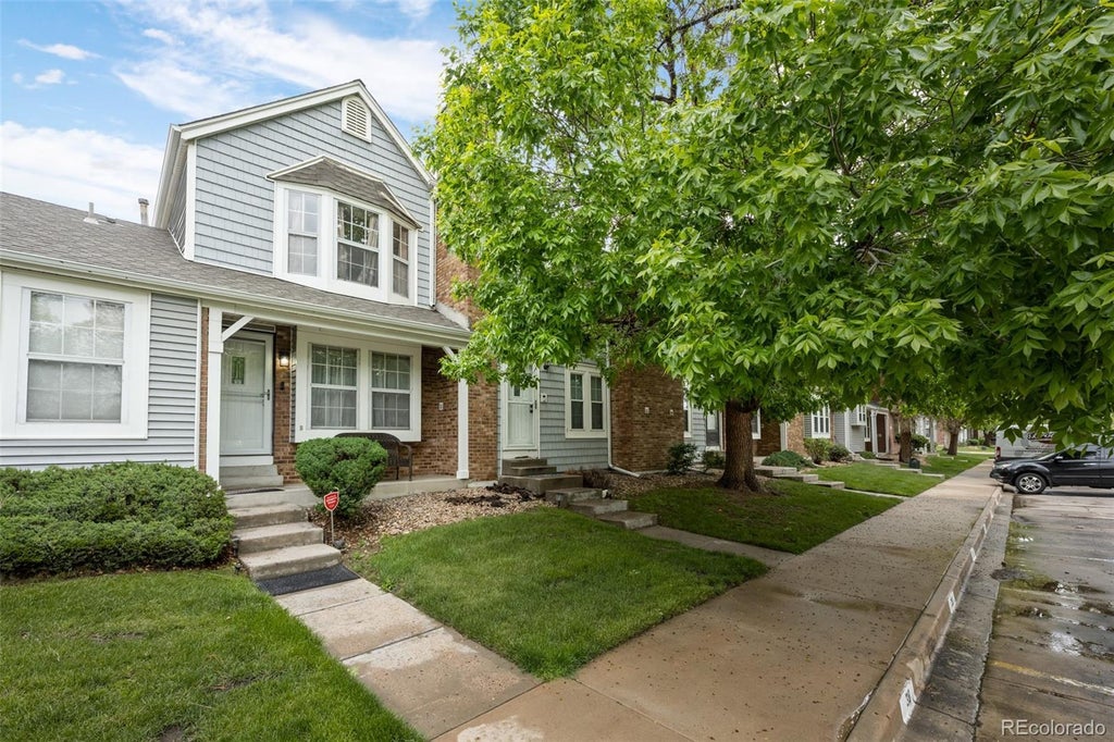 Welcome to this beautifully light-filled 2-bedroom, 2-bath townhome ideally positioned between Denver and Boulder with effortless access to I-25, I-76, parks, trails, and the RTD Transit Station. The open main level invites relaxation with brand-new carpet, a cozy wood-burning fireplace, and a convenient 1/2 bath (powder room). The kitchen offers oak cabinetry, laminate counters, and a garden-style window overlooking the private fenced patio, perfect for alfresco dining or weekend BBQs. A gate opens to greenbelt walking paths, and an outdoor storage unit adds everyday ease. Upstairs, vaulted ceilings and skylights illuminate two spacious bedrooms. The primary suite showcases an 11-foot closet, dual-entry full bath, and abundant natural light, while the second bedroom features bay windows and a charming shuttered overlook. New central A/C, a stackable washer and dryer, and two reserved parking spaces enhance comfort and convenience. HOA covers exterior maintenance, water, sewer, trash, and snow removal. Minutes to shopping, dining, Pelican Ponds Open Space, Thornton Community Park, and the new Community Center. This home blends comfort, livability, and location with exceptional value. Move right in and enjoy the best of Thornton living.