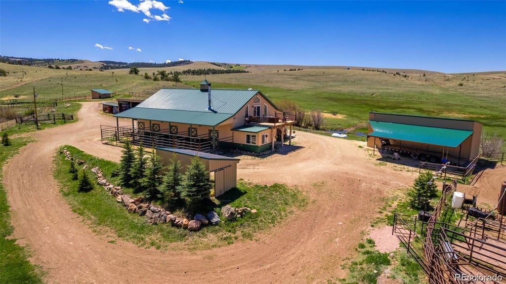 Discover a rare 70-acre equestrian estate nestled in the heart of Westcliffe, CO. This 1,800 sq ft barndominium seamlessly combines rustic charm with modern amenities, featuring two bedrooms and three bathrooms atop a fully equipped 5-stall barn. The interior boasts hardwood floors, cathedral ceilings, and a well-appointed kitchen, while the master suite offers full bathroom with tub & shower. Designed with the equestrian enthusiast in mind, the property includes a heated and insulated barn with five 12x12 stalls, a tack room, and additional metal outbuildings. These comprise a 40x12 RV/Horse Trailer storage with a concrete pad, a 50-amp RV hookup with sewer clean out, and a greenhouse. A 100x200 roping arena with a return alley, Antelope Creek, a spring-fed pond, and panoramic views of the Sangre de Cristo mountains enhance the property's allure. This exceptional horse property is close to national forest - Experience the perfect blend of comfort, functionality, and natural beauty in this unparalleled Westcliffe retreat.
