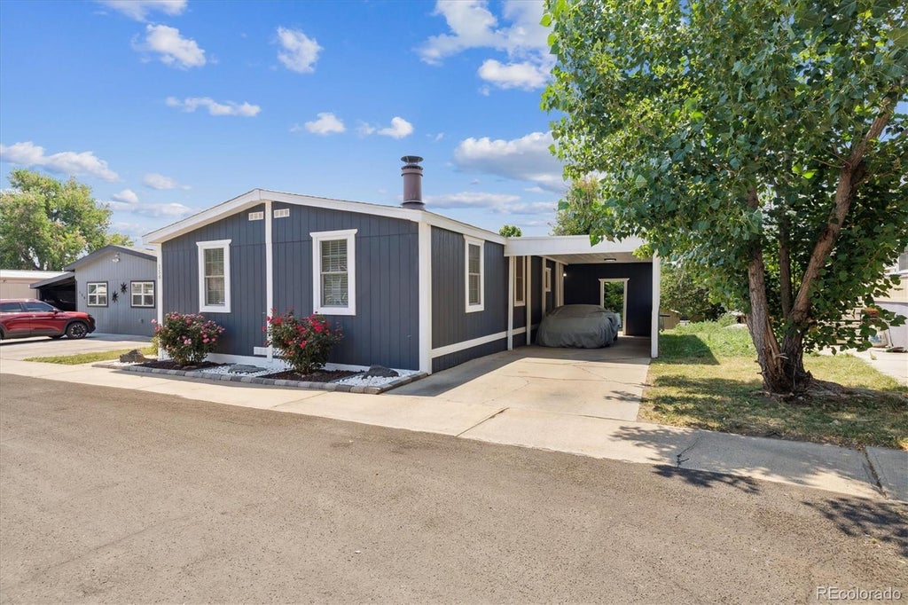 Fully renovated in summer 2018! Upon arrival, you’ll notice the NEW UPDATED WOOD siding with bright white trim and refreshed landscaping. An attached carport, added during the renovation, offers covered parking for one car, with uncovered space behind it for another. Step inside to custom thoughtfully placed real wood flooring throughout. The family room, featuring newer canned recessed lighting throughout and a custom built-in bar with wine fridge—a true highlight. The kitchen includes updated cabinetry, exotic Brazilian granite countertops, stainless steel appliances, and continues the custom wood flooring. The dining room offers space for good sized table and features a built-in buffet—ideal for entertaining or extra storage. The large bright living room offers a cozy wood-burning fireplace, perfect for winter nights. Additionally, there is an office space with great natural light and newer double-pane windows. Two well-maintained secondary bedrooms also feature the custom wood floors and have a shared hall bathroom which includes a shower-tub combo, single-sink vanity, and tile flooring. The generously sized primary bedroom includes and large walk-in closet, an en-suite bath with a modern vanity and walk-in shower. Washer and dryer included! Move-in ready with newer double-pane windows, furnace, A/C, roof, drywall, siding, attic insulation, and doors—all upgraded during the 2018 renovation. You also won't want to miss out on the WORK SHOP/STORAGE AREA Spanning Length Of Home which is 350 Square feet!