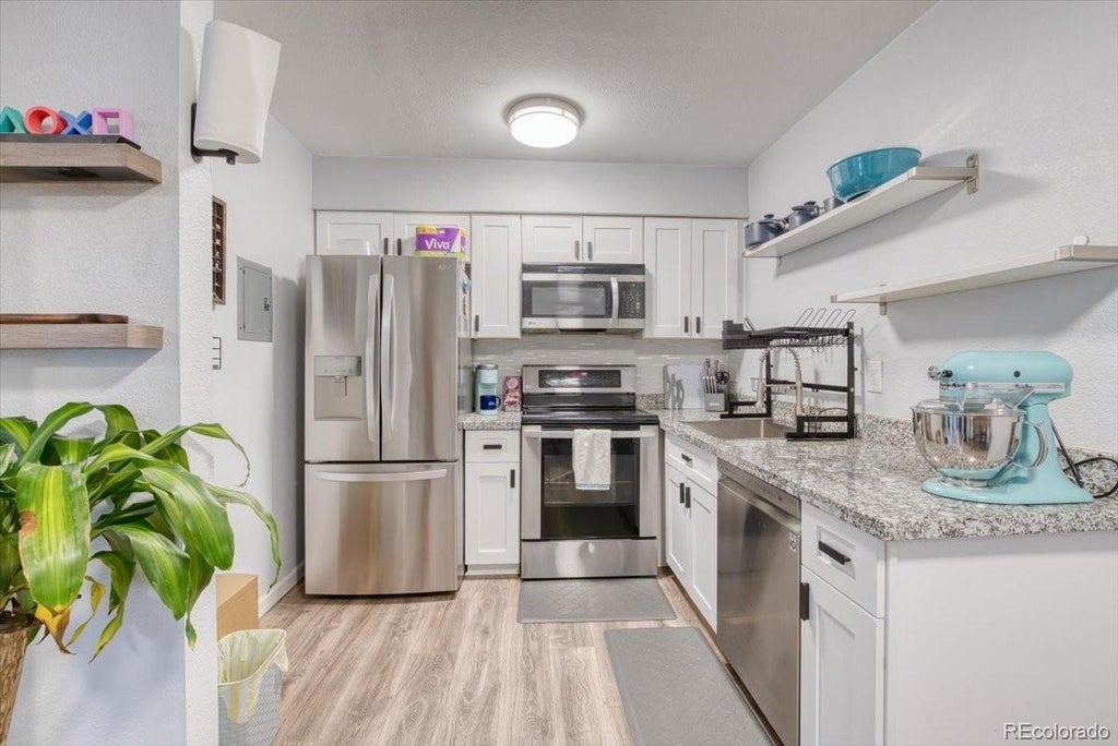Welcome to this fully remodeled studio condo in the heart of Cherry Creek Village. This updated home features a bright open floorplan, luxury vinyl plank flooring, and a modern kitchen with granite countertops, stainless steel appliances, and a dining nook. The full bathroom has been beautifully renovated with stylish tile and fixtures, while a spacious walk-in closet adds convenience and functionality. Enjoy two off-street parking spaces, central A/C, and access to fantastic HOA amenities, including an outdoor pool, clubhouse, fitness center, garden area, and shared laundry facilities. Monthly dues cover water, trash, insurance, snow removal, and grounds maintenance for true low-maintenance living. With its prime location just steps from Cherry Creek Trail and minutes to Cherry Creek Shopping Center, Glendale dining, and downtown Denver, this home is ideal for first-time buyers, investors, or anyone looking for a low-maintenance lifestyle in a central location.