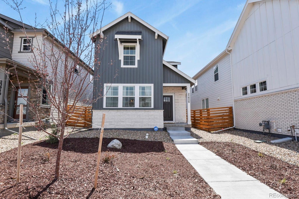 **PRICED $79,000 BELOW THE BUILDER** Welcome to this stunning, low-maintenance home with an open floor plan and move-in ready amenities. Set in a perfect location with plenty of parks and open space nearby. Featuring approximately $30,000 in upgrades, this 3 bedroom/3 bath home includes refrigerator and Sony TV already mounted in the living room. Living room sectional is negotiable. Natural light floods the living room highlighting the upgraded plank floors on the main level. The floorplan seamlessly connects the living room to the dining room and kitchen. Makes an inviting space for casual dinners or hosting a group. Large pantry, stainless appliances and center island add to the appeal and value of the kitchen. Designer touches have been added like window treatments and upgraded trim at kitchen cabinets. Electrical upgrades include a ceiling fan in family room with additional lighting. Upstairs, the primary suite features a luxury bath with dual sinks, large shower and a walk-in closet. Both secondary bedrooms have walk-in closets as well. Laundry room is conveniently located near all bedrooms on the upper level. Fenced side yard and xeriscape design with irrigation system. Adjacent to community pocket park. Easy access to community trails. The Aurora Highlands is a fantastic neighborhood and is just minutes away from The Aurora Highlands Town Center, restaurants and shopping. Conveniently located near the new community school. This home is a must-see! Copy the link and click on the house to view the showcase video - https://t.ly/MIEgY