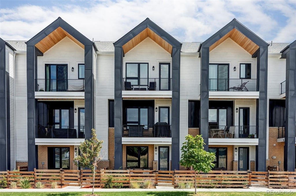 Lender paid incentives of 1% of the loan amount, up to $6,500, being offered. Buyer(s) can use these funds towards interest rate buydowns, closing costs, and/or prepaids. Buyer(s) must be purchasing the home as a primary residence and using a Conventional, FHA, or VA loan. An architectural blend of A-frame character and contemporary design, this home is a showcase of light, space, and style. A gated and covered front porch welcomes you inside, where the lower level offers everyday convenience with a bedroom and ¾ bath, plus direct entry from the attached two-car garage. The main level is the centerpiece of the home, designed with high ceilings and an open, flowing layout that basks in natural light. At its heart, a large entertainer’s kitchen shines with quartz countertops, a generous center island with seating, abundant storage, and additional open shelving. Just beyond, a spacious wet bar creates the perfect setup for gatherings. Expansive windows and a west-facing balcony frame sunset views, while a private main level office offers a quiet place to focus. On the upper level, the primary suite features an en suite bath and seamless access to the upper-level laundry. A secondary bedroom with its own en suite, an additional flex nook ideal for a second office or workout space, and another west-facing balcony complete the thoughtful design. Custom roller shades are installed throughout the home to offer privacy. Set in a serene Central Park location, this home balances peace and accessibility — surrounded by trails and nature paths, just 5 miles from Denver’s third-largest park, and only moments from the Central Park RTD Station. This residence captures the best of mountain-inspired architecture and modern convenience.