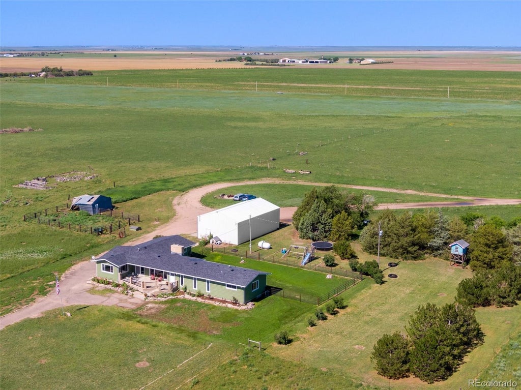 Experience peaceful country living on this stunning 80-acre property perched on a bluff and overlooking Sterling, CO. Enjoy breathtaking sunrise and sunset views from the spacious front concrete porch or unwind in the hot tub on the large back deck. This charming 2,384 sq ft ranch-style farmhouse features 3 spacious bedrooms, 2 bathrooms (1 full, 1 three-quarter), and timeless character throughout. Built in 1961, the home offers a mix of comfort and charm with a family room, living room, brick fireplace, wood-burning stove, breakfast nook, and large picture windows that flood the space with natural light. Additional highlights include a newer Class 5 shingle roof, newer exterior paint, a new front door, and all stainless-steel appliances and the washer and dryer. The lush backyard and asphalt driveway enhance the property's appeal, while the 1,516 sq ft detached drive-thru shop offers incredible space for hobbies, equipment, or storage. The 500-gallon propane tank is owned, and the property includes a 14-month Blue Ribbon Home Warranty for peace of mind. Whether you're looking for a private homestead, hobby farm, or quiet retreat, this one-of-a-kind property combines rural serenity with everyday comfort.