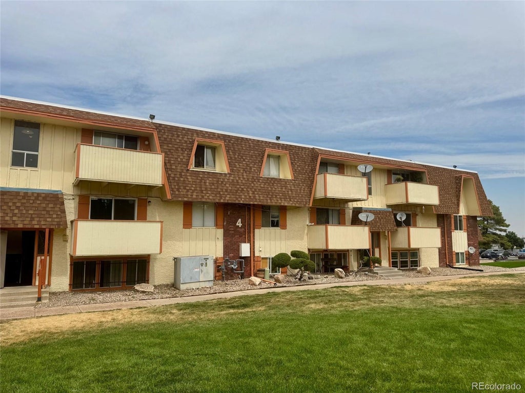 Investment opportunity! Well maintained, garden level corner unit offers a large living room with wonderful natural lighting, dining area, galley style kitchen with a full appliance package- stove range, dishwasher, microwave and refrigerator. Modernized full bathroom with beautiful tile work. A larger sized second bedroom with deep closet space and a spacious primary bedroom. The property has been updated with vinyl flooring through-out, appliances, newer windows and A/C. Convenient reserved parking and laundry. Well maintained common grounds and swimming pool for your enjoyment! Property is within walking distance to shopping, restaurants and public transportation. Easy access to I-25. Take advantage of this opportunity!