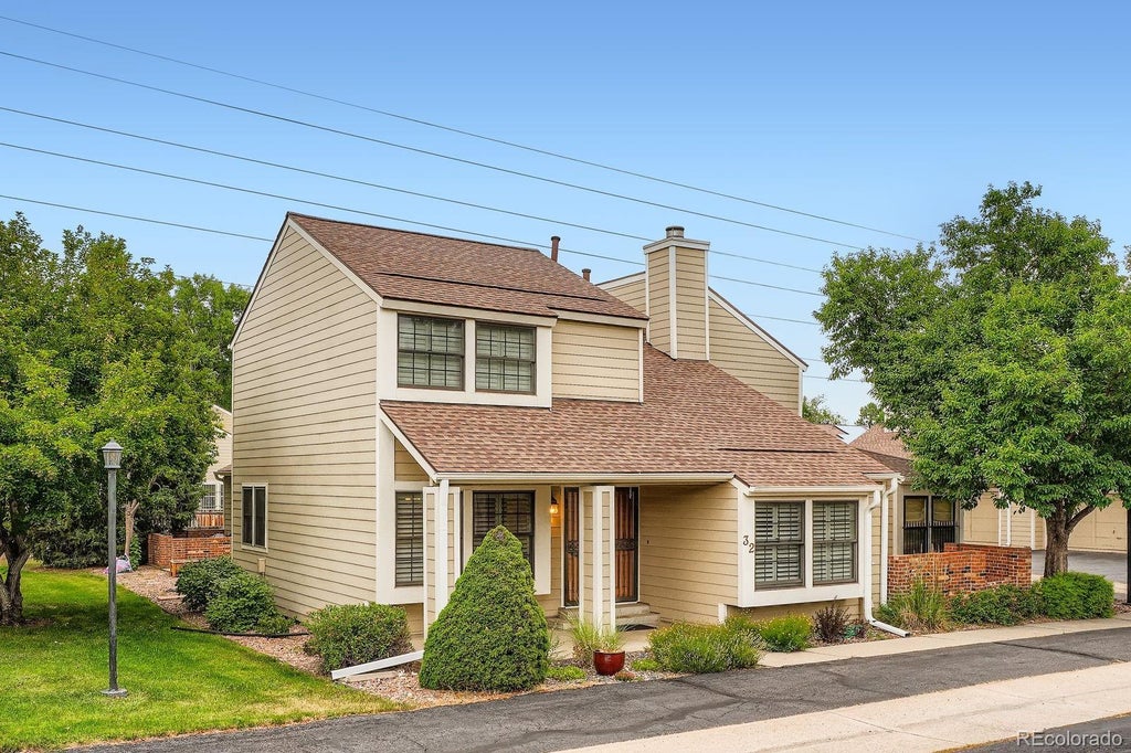 Welcome home to this turn-key end-unit townhome backing to community greenspace and offering over 1,500+ sqft of functional living and entertaining space in Lakewood’s Meadow Creek community. 6869 W 10th Avenue welcomes you with a charming covered front porch and mature trees, the ideal spot for a morning cup of coffee. Upon entry, grand vaulted ceilings with exposed beams, tons of natural light, plantation shutters, and a neutral palette seamlessly connect the main living spaces. The fireplace serves as the focal point of the great room, adding both texture and warmth to the space. Stunning hardwood floors complement the formal dining space, steps from the large kitchen. Step outside to a spacious courtyard patio for al fresco dining or relaxation while taking in the lush green surroundings of the property. Upstairs, two spacious primary suites with ensuite bathrooms and walk-in closets. The attached 2-car garage is accessed through the laundry/mud room, offering additional storage space and easy access to the home. Ideally located within minutes of Jefferson County schools, parks, shopping, dining, public transportation, and with easy access to major roadways, 6869 W 10th Avenue truly cannot be beaten. Book your showing today!