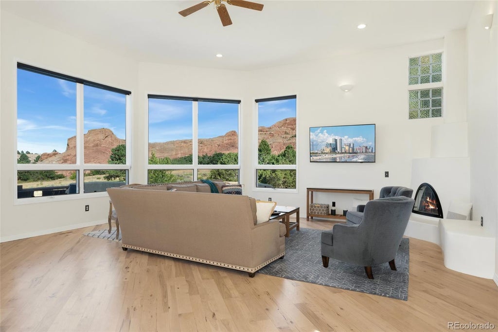 Set on one of Roxborough Park’s most extraordinary lots, this home captivates with sweeping panoramic views of dramatic red rock formations, the Arrowhead Golf Course, Chatfield Lake, city lights, and the Pike National Forest. A brick paver driveway leads to a hickory-floored interior that flows seamlessly throughout the main level, creating a warm, elegant atmosphere. The heart of the home is a chef’s kitchen with slab granite countertops, newer appliances including an oversized Thermador refrigerator, gas cooktop, and wine cooler, plus a generous prep island that opens to a sun-filled sunroom and expansive living area with vaulted ceilings and pristine views of a signature red rock formation. Perched for ultimate privacy, the primary suite occupies the entire upper level, serving as a serene retreat with dual walk-in closets, separate vanity areas, a spa-inspired five-piece bath, and a private rooftop deck beneath a custom pergola where the twinkle of downtown Denver’s skyline meets the stillness of the surrounding red rocks. The walk-out lower level is designed for recreation and productivity, featuring an expansive additional office, a large exercise room, a fireplace, wet bar, pool table, two bedrooms, and a full bath, all opening to a backyard brick paver patio. Outdoor living is exceptional with multiple spaces to gather and relax including a covered patio, paver courtyard, rooftop deck, and lush landscaped yard with sprinklers front and back, all designed to maximize the sweeping vistas and natural beauty of the setting. Additional highlights include all hickory kitchen and bath cabinets, remodeled bathrooms, new bedroom carpet, window treatments, a whole-house generator, new furnace, AC, and water heater, ensuring every detail has been thoughtfully updated. This home is a rare opportunity to experience a lifestyle defined by luxury, tranquility, and Colorado’s most iconic scenery.