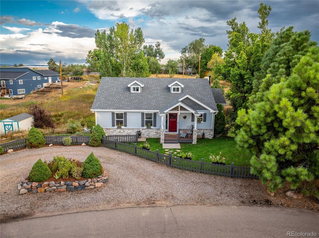 Beautifully updated home boasting an exceptional location and a generously sized lot, offering ample space for comfortable living and outdoor enjoyment. The remodeled kitchen opens to the great room, featuring vaulted ceilings and a fireplace, perfect for creating cozy Colorado winters. Wood floors throughout the main floor. The back deck offers great views of the green space and the stream running in the backyard. Stunning primary bathroom with custom finishes, a true oasis! Flex space in the attic, ideal for a bedroom or office, with a view to the East. Skylights throughout bring in natural light. The walkout basement is complete with a bedroom and remodeled bathroom. The large lot provides a country setting for peaceful mornings, evenings and afternoons on the deck. Custom built chicken coop that could easily be used as a dog run plus, raised garden beds! Spacious 3 car garage and large driveway. This truly is a unique property!
