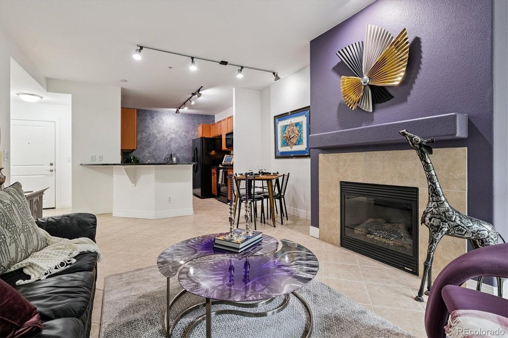 Unsurpassed location near the upscale Willow Creek neighborhood and Denver Tech Center, Dry Creek Crossing Condos offer resort style living at an attractive cost. Mere blocks to light rail and RTD. This gently lived in condo offers an open airy floorplan. Freshly painted and impeccably maintained. A large great room with a cozy gas fireplace and plantation shutters add a touch of class. There’s a private balcony with a heated storage unit. The stylish kitchen features, slab granite, warm tone wood cabinets and a complete suite of appliances. A breakfast bar, ample counter space and tons of cabinets make cooking and entertaining easy. The substantial sized bedroom also features plantation shutters, ceiling fan pre-wire and walk in closet. A full size, in unit, stackable washer and dryer are included. The full bath Features a double vanity, tub and shower. Amenities abound with a pool, spa, clubhouse, lounge, fitness center and even a pool table. The monthly H.O.A. includes a deeded secured underground garage space complete with storage unit. The building entrance is wheelchair accessible. Located in the highly acclaimed Cherry Creek School District. There are innumerable choices nearby for dining, entertainment and shopping. Convenient to the I-25 and C-470 corridor. Whether you’re buying for the first time or downsizing, this one checks all the boxes.