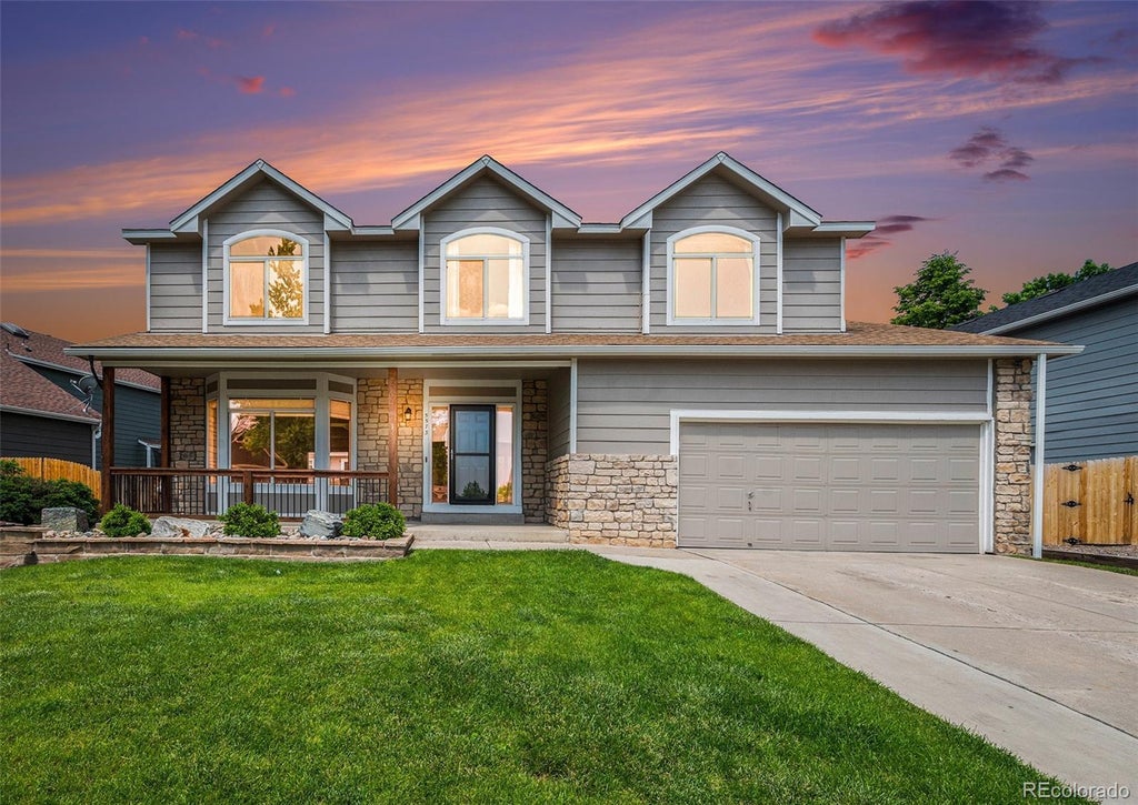BRAND NEW windows throughout plus a BRAND NEW patio door as of July 2025. BRAND NEW roof installed August 2025. BRAND NEW carpet on the main floor. BRAND NEW plumbing throughout entire home scheduled for late October or early November 2025. Welcome to this spacious and inviting two-story home offering 4 bedrooms, 3 bathrooms, and room to grow with an unfinished basement. A charming covered front porch greets you before stepping into the cozy living room. Flow into the dining area, perfect for gatherings, and continue into the well-appointed kitchen featuring granite countertops, stainless steel appliances, and a sliding glass door leading to the backyard. The family room impresses with soaring vaulted ceilings and a warm gas fireplace — the perfect place to unwind. Upstairs, the private primary suite is a true retreat, boasting vaulted ceilings and a freshly remodeled bathroom with a luxurious soaking tub, separate shower, private water closet, and a large walk-in closet. Two additional bedrooms and a full bathroom (also freshly remodeled) complete the upper level. The backyard is a true highlight, featuring a cool treehouse and an apple tree! Enjoy raised garden beds already bursting with fresh strawberries and lettuce — a dream for any green thumb. Located near many parks and walking trails, and steps away from the pool! Enjoy being part of the Westgold Meadows Community where residents enjoy access to amenities such as a community pool, tennis courts, and well-maintained common areas. Easy access to C470 and Walmart is just down the street. This home offers comfort, style, and flexibility in every corner — ready for your next chapter.
