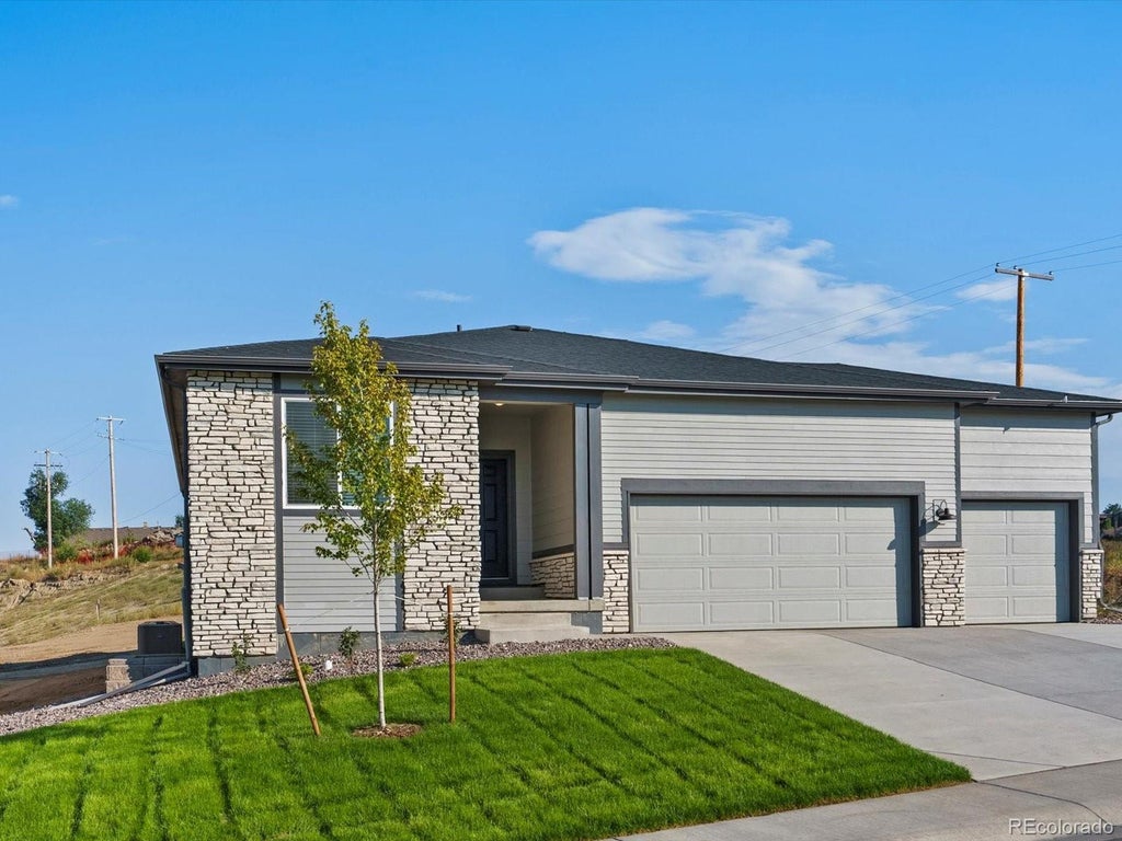 Unfinished Basement for future customization and storage! Welcome to the Blue Mesa — a spacious and thoughtfully designed ranch-style home that blends comfort, flexibility, and modern living. This open-concept floorplan features a versatile flex space, ideal for creating a personalized home office, fitness area, or creative studio to suit your lifestyle. The heart of the home flows seamlessly from the kitchen into the living and dining areas, perfect for entertaining or relaxing with family. The primary suite offers a peaceful retreat with a generously sized walk-in closet that connects directly to a well-appointed bathroom, enhancing both convenience and privacy. With three bedrooms, two full bathrooms, and a three-bay garage, this single-story home provides the perfect balance of functionality and style for everyday living. Meritage Homes is known for quality construction, innovative design, and exceptional energy efficiency—thanks to features like advanced spray foam insulation. With transparent, all-inclusive pricing, every home includes appliances, blinds, and designer upgrades, ensuring a truly move-in ready experience that reflects our commitment to excellence and sustainability. Nestled in the heart of Windsor, Poudre Heights offers the perfect balance of small-town charm and modern convenience. Enjoy nearby parks like Eastman Park and Windsor West Park for outdoor fun. Shop and dine at The Promenade Shops at Centerra or Windsor Town Center, just minutes away. Whether you're planning a family outing, a date night, or a quick errand run, everything you need is right around the corner!