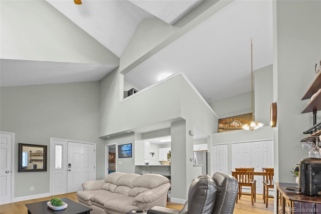 Welcome to this updated end unit, move-in-ready condo with RARE garage, in the sought-after Olde Mill community. This light-filled home offers a thoughtfully designed living space, featuring two spacious bedroom suites—each with a private bath—plus includes a rare garage and plentiful guest parking. Inside, you’ll find soaring vaulted ceilings, brand-new flooring throughout the unit, and a traditional staircase (no spiral staircase here!). This beautiful remodeled kitchen shines with stainless steel appliances, updated soft-close cabinetry, modern countertops, & a pantry. Convenient main-level laundry closet includes a stackable washer/dryer. The functional flow of the kitchen, family room & dining room, make entertaining a breeze. Just outside the dining area, you'll love relaxing on your private balcony or cozy up to the family room's fireplace. The main-level suite boasts an updated full bath with tub/shower combo, while the upper-level bedroom suite w/ updated bathroom ensuite, features its own balcony, a versatile loft overlooking the living area (perfect for a home office), & also includes a private exterior entry—ideal for roommate accommodations. Relax by the cozy wood-burning fireplace in winter, or stay cool with newer central A/C in summer. Enjoy the community pool just across from this building. Recent updates include: water heater, central A/C, remodeled kitchen & bathrooms, newer stainless steel appliances, new window blinds, & beautiful LVP flooring throughout. A private storage closet sits right outside the front door. The HOA dues cover exterior maintenance (newer roofs), exterior of garage, trash, grounds maintenance & pool. Olde Mill offers an unbeatable location near award-winning Cherry Creek Schools, DTC, shopping, dining, I-25, Holly Park Pool & Tennis Center, scenic trails, and Fiddler’s Green Amphitheater. Don’t miss this rare opportunity to own a bright, stylish, and low-maintenance condo in one of the area’s most desirable communities!
