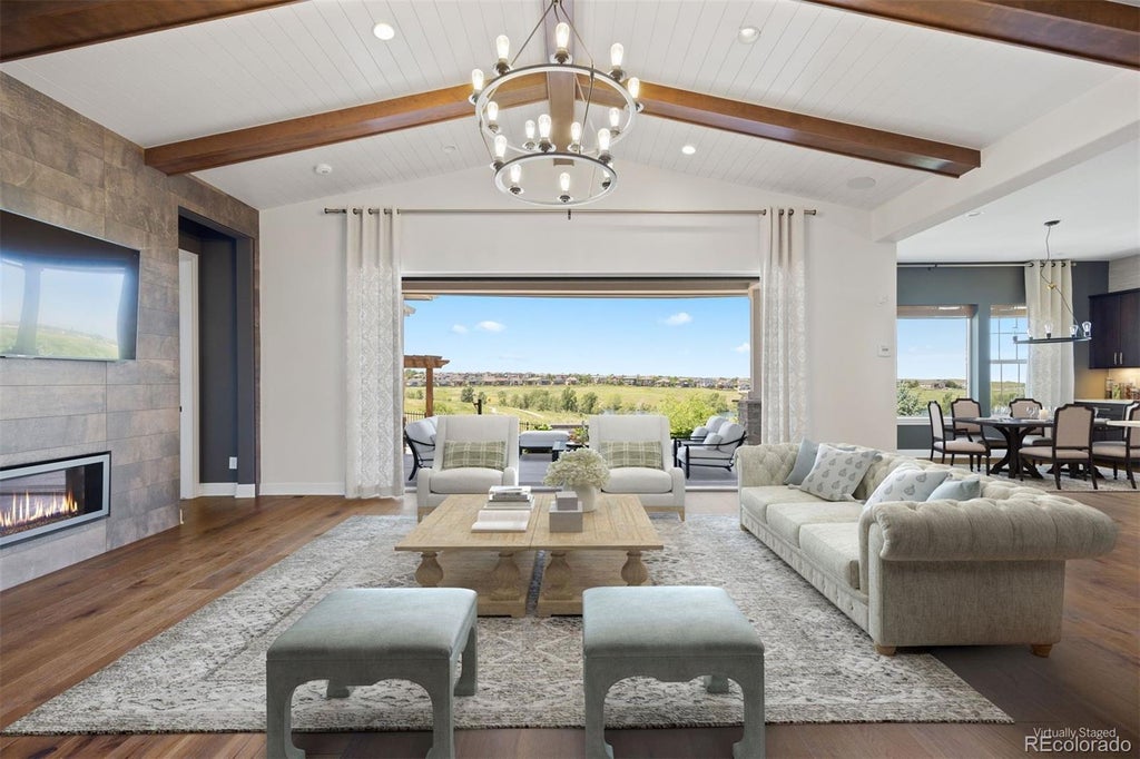 IMAGINE YOUR LIFE WITH A VIEW. THIS RANCH STYLE HOME OFFERS 3461 SQUARE FEET AND IS POSITIONED ON AN UNFORGETTABLE LOCATION! THE BEAMED GREAT ROOM WITH ITS GLASS PATIO DOORS OPENS COMPLETELY AND LEADS TO THE LARGE COVERED PATIO. ADJACENT TO THE GREAT ROOM IS THE KITCHEN WITH CUSTOM CABINETRY, UPGRADED APPLIANCES, OVERSIZED QUARTZ COVERED ISLAND AND A BUTLERS PANTRY WITH A WINE REFRIGERATOR. THE PRIMARY SUITE WITH GREAT VIEWS AND AN EXCITING MASTER BATH WITH OVERSIZED SHOWER,SEPARATE TUB AND A CUSTOM CLOSET. THERE ARE 3 BEDROOMS, A STUDY AND 3 BATHROOMS. SPECIAL FEATURES ARE A FINISHED 3 CAR GARAGE WITH STORAGE, SMART HOME TECHNOLOGY, WOOD AND TILE FLOORING,UPGRADED LIGHT FIXTURES,BUILT- IN BOOKSHELVES AND A FULL UNFINISHED BASEMENT. OFF OF THE COVERED PATIO FEATURES ARE, TILE COVERED SPA, OUTDOOR KITCHEN AND FIREPLACE. THERE ARE WALKING PATHS THAT LEAD TO THE CLUBHOUSE WITH A POOL, FITNESS AND TO THE BOATHOUSE AND LAKE. THE AREA OFFERS CHERRY CREEK SCHOOLS, AND GOOD ACCESS TO SOUTHLANDS SHOPPING AND C470.