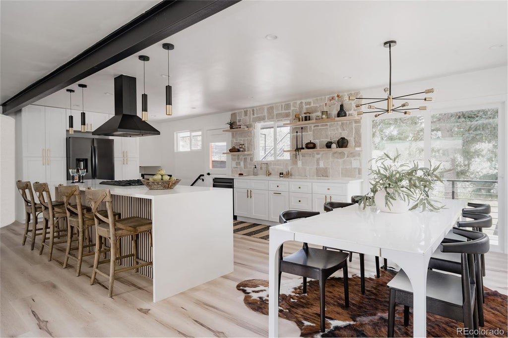 Welcome to this exquisitely renovated raised ranch in the highly sought-after Normandy Estates neighborhood. Thoughtfully redesigned with modern living in mind, this home offers a seamless open-concept layout anchored by a stunning chef’s kitchen—perfectly positioned at the heart of the home for effortless entertaining. With five generously sized bedrooms and four beautifully appointed bathrooms, there’s room for everyone. The luxurious main-floor primary suite is a true retreat, featuring dual walk-in closets and a spa-inspired five-piece bathroom that invites relaxation. Downstairs, the light-filled garden-level basement offers a spacious family room with a brand-new wet bar—ideal for movie nights or hosting game day. A large basement bedroom just off the living space makes an excellent guest suite, home office, or dedicated playroom. Step outside to your private backyard oasis, backing to a peaceful creek and surrounded by mature trees on a 1/3-acre lot. Whether you're enjoying a quiet morning coffee or evening gatherings, the elevated patio provides the perfect vantage point. Just blocks from the community pool, tennis courts, clubhouse, and scenic trails, this home offers both tranquility and connection. With quick access to C-470 and Highway 85, adventures in downtown Denver or the foothills are just minutes away. This is a rare opportunity to own a fully updated, thoughtfully reimagined home in a quiet, amenity-rich neighborhood. Welcome home.