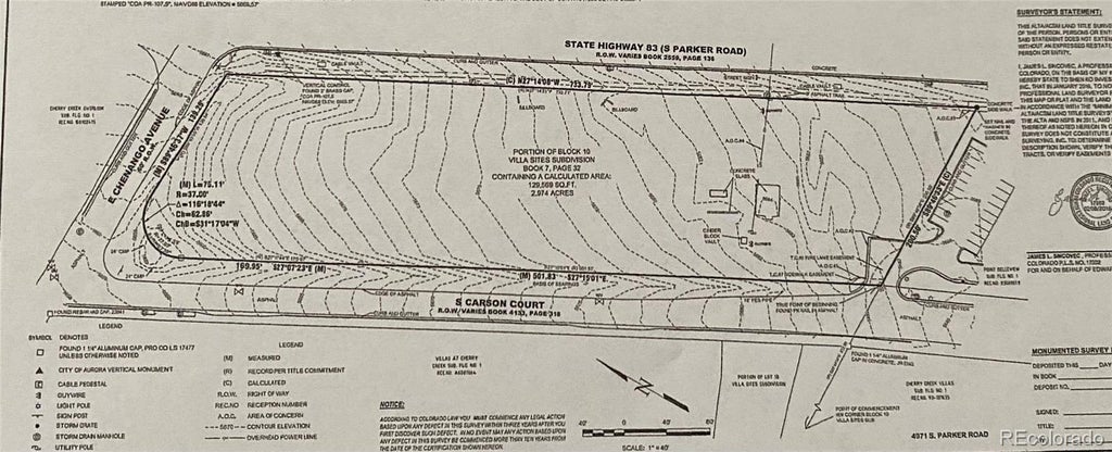 Fabulous development site consisting of 2.93 acers available for potentially numerous options. Presently zoned; Mixed Use, Residential, Retail & Office. Height restriction from 38’ to 45’. However, City Planning and City Council would possibly approve a density and height restriction increase for an attractive condominium project that would bring vast views of the Rocky Mountain Front Range from Pikes Peak to longs Peak. Close to multiple Retail Shopping area and Restaurants. Just off Cherry Creek State park with the largest off lease Dog Park in the state, Camping and boat ramp. Easy access to E-470 to the South and I-225 to the North