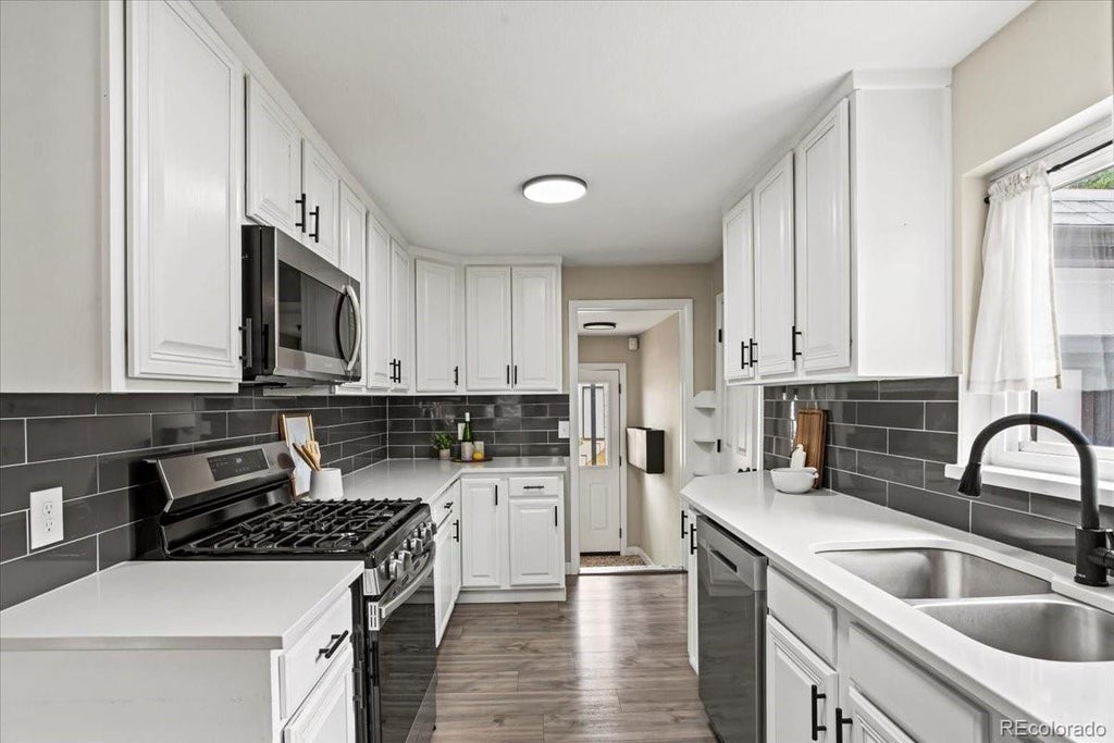 >> PRICED TO SELL << Step into charm and comfort with this freshly updated 4-bedroom, 3-bath bungalow in the heart of Englewood! Recent upgrades include a, new water heater with expansion tank (2025), new entry doors (2025) and new roof (2023)—all designed for peace of mind and low maintenance living. The exterior is clad in durable Hardie concrete siding resistant to rot, warping, and fire, built to last up to 50 years. Inside, you’ll find a bright, open-concept layout that flows effortlessly from room to room. The kitchen shines with quartz countertops, a stylish backsplash, and stainless steel Samsung appliances—including a smart, WiFi-capable fridge. All three bathrooms have been tastefully updated with new vanities and contemporary tile finishes. Resting on a spacious lot, the property has a detached two-car garage and mature apple trees. Convenient Englewood location close to light rail, easy access to Broadway/Bellevue, South Platte Trails, Riverpoint shopping and dining. DISCOUNTED RATE OPTIONS and NO LENDER FEE FUTURE REFINANCING may be available for qualified buyers. Ask the Listing Agent for details.
