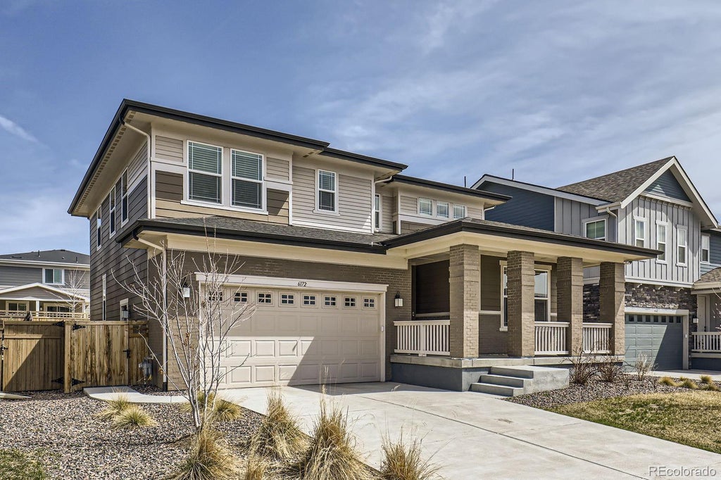 YES, as others have said, Painted Prairie is an award-winning development. And YES, you’re just minutes from the 20+ acre Painted Prairie Park. As well as just minutes from DIA, downtown Denver, E-470 and I-70. However, the jewel in all this is the home! Completed just over 2.5 years ago, you have the benefit of getting a new home without paying the new home prices! As you walk up to enter this home it features a covered front patio for those quiet evenings to relax outdoors and once inside, there is a main floor bedroom/study with an adjacent full bath with custom tile features in the tub surround and upgraded quartz vanity counter. The main floor was designed with an open concept in mind; so, you’ll find the formal living room, dining room and kitchen open for entertainment. Beautiful plank floors grace the open area. A gas fireplace is set in the tiled wall for all to see. The kitchen has quartz counters, large island with breakfast bar and sink, gas range (with 5 positions), double oven, refrigerator (all appliances are stainless) and a large pantry. Between the dining room and kitchen are the sliding glass doors leading out to the covered Trex deck and the back yard. Fully fenced back yard for children at play or pets. Both front and back yards have in-ground sprinklers. The upstairs is carpeted (except in the bathrooms and laundry areas which are tiled), a loft, 2 standard bedrooms, the main full bath, laundry room (with washer and dryer already installed), the primary bedroom and primary ¾ bath. All bathroom counters are quartz, and they each have their own linen closets and custom tile work in the tub surrounds. The basement is finished with egress windows, carpeted floors, a standard bedroom, adjacent private full bath, large rec room/game room or family room. There is also a storage room with concrete floor, installed sump pump, water shut off valves for the main house as well as the sprinkler system. This is the best value in Painted Prairie!