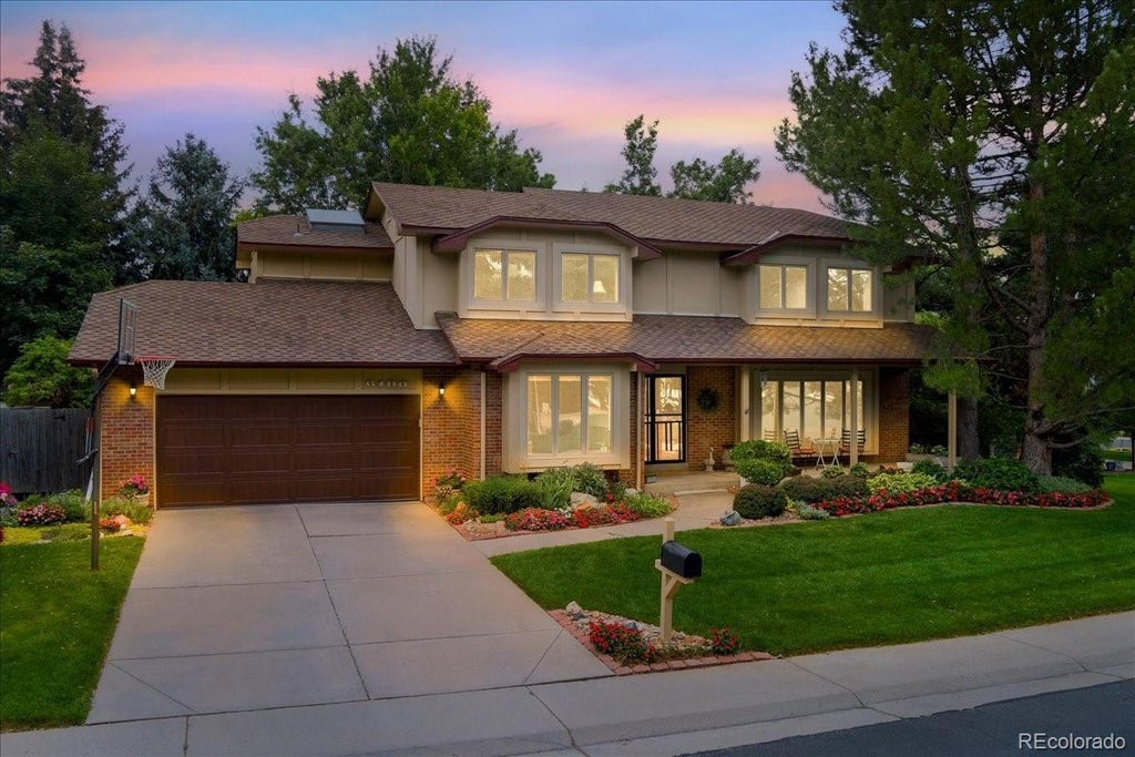 Value pricing and quick possession on this elegant, large and well cared-for family home with immaculately landscaped lot in the highly desired unincorporated west Arapahoe County neighborhood, Hills at Cherry Creek Vista South. An executive two-story home with finished basement, big rooms and lots of light. This home sits on a quiet, very private fenced and meticulously maintained yard reminiscent of an English garden. Large rear covered patio and extended deck perfect for family gatherings. Also included is a natural gas grill. Five big bedrooms (bsmt bed non-conform) and four bathrooms. Brand new carpet throughout, refinished hardwood floors on main level, lots of fresh paint, new lighting fixtures. Huge, vaulted family room with floor to ceiling moss rock wood-burning fireplace and big picture windows looking out on the lovely and private backyard. Large main floor study with hardwood floors and built-in deck. Substantial formal living room and dining room for entertaining. Finished daylight basement with very big media/rec room with egress window and wet bar, full bath, off-season storage closet and (nonconforming) bedroom. The home has solid wood six-panel doors, a low maintenance full brick wrap exterior, newer furnace and central air (both just serviced) and 75-gallon hot water heater. While this home has been lovingly cared for, it is priced for the new owners to add their own updates and personal touches. Kids go to the nationally recognized, award-winning Cherry Creek School district and Cherry Creek State Park is a short walk away. Great access to shopping, transportation, entertainment and the Denver Tech Center. Jamaica Ct is a quiet street without much through traffic. Cherry Creek Vista HOA is voluntary at $50 per year and the Cherry Creek Vista Pool District (pool on Orchard Rd.) is available to join at https://www.ccvprd.org/.