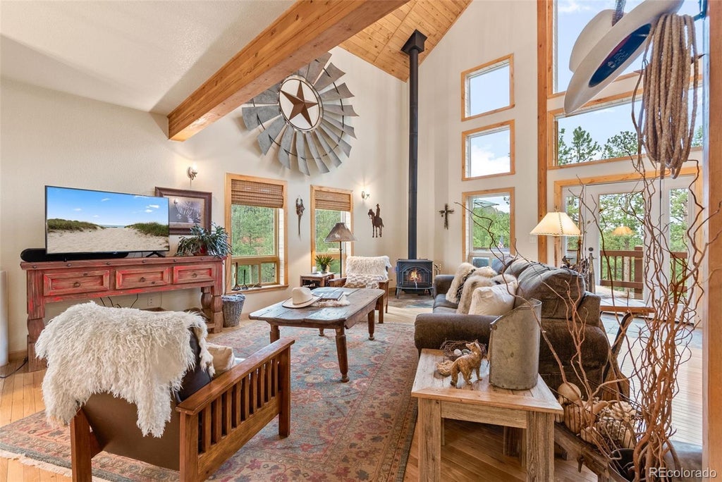 APPRAISED OVER VALUE AT $1.1M + PRE-INSPECTED AND READY TO GO! Where the WEST Lives Well—a truly one-of-a-kind Colorado mountain RETREAT nestled on 6.44 stunning rolling acres in Pine. This 3-bed, 4-bath home blends rustic soul with FUNCTIONALITY, offering 3,433 total square feet. Step into the soaring great room with tongue-and-groove ceilings, a wall of WINDOWS, and your own personal view of Long Scraggy Peak. Local lore tells of how the peak resembles a great Native American chief lying in eternal rest, his face to the sky, wrapped in the ridgeline of the Front Range. A cozy wood-burning stove anchors the space, creating WARMTH and ambiance year-round. The kitchen features bold, deep red cabinetry, slate tile floors, modern stainless steel appliances, a walk-in pantry, and UPDATED quartz counters with a newly installed backsplash. Outside, the expansive SOUTHWEST-facing deck offers peaceful outdoor living with sun-drenched views in every direction. A year-round CREEK flows through the land, leading to a rustic western-style outbuilding affectionately coined “The Saloon”—a show-stopping space for entertaining that looks pulled straight from a film set. Additional features include a fenced GARDEN, two fenced HORSE PASTURES, a lean-to shelter, hay barn, and firewood storage—fully set up for EQUESTRIAN use or hobby farming with a DOMESTIC WELL produces 4.8GPM to boot. Enjoy peace of mind for insurance with a new Class 4 impact-resistant roof (2023), fresh exterior stain (2024), and a 5-car attached garage. Access is easy year-round on a county-maintained road, and outdoor ADVENTURE is just 3 miles away at the South Platte River, home to award-winning fly fishing, world-class mountain biking, and miles of horse and hiking trails. With NO HOA, flexible land use, and SCENERY that speaks straight to the soul—this is more than a home. It’s a LIFESTYLE waiting to be lived.
