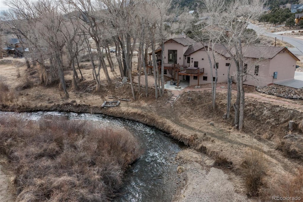 Looking for your very own in-town oasis? This home's setting is absolutely gorgeous. River frontage, trees, public utilities, south facing driveway, all nestled along the South Arkansas River! Here you can enjoy your own private river access where fishing is literally right out your door. This roomy custom 3 bedroom home has stunning views in every direction, allowing each window to frame a perfect mountain setting from Methodist Mountain to the Collegiate Peaks, the Sangres, even Tenderfoot Mountain and Chipeta! You will have plenty of space for your hobbies, projects, and fitness activities. Speaking of fitness, Little River Ranch has a recreational trail that traverses several miles all within the subdivision! What truly makes this home unique are the soaring vaulted ceilings and timber accents in the Great Room. You will appreciate the sophisticated extra touches including the dual facing fireplace, expansive wood countered kitchen island, luxurious steam shower, and tall ceilings throughout. Homes with river frontage don't come along often. Add to that public land across the river and a conservation easement to the west, it's a rare find that's ideally located 5 minutes from the City of Salida! Take a look through the 3D tour, then contact us today to make an appointment to tour this exceptional property in person. This home requires 24 hours notice for showings. Note: The adjoining 0.58 acre vacant parcel to the east presents an exceptional opportunity for inclusion in the offering, available for an additional $300,000.
