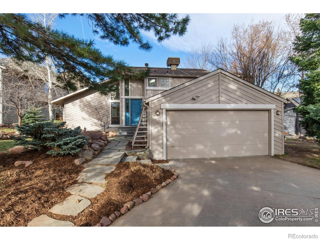 Discover the coveted Devil's Thumb lifestyle in this dramatic split-level 4BD/2BA featuring a thoughtful layout, beautiful outdoor space and huge views close to trails, parks, and the community pool and tennis courts. Inside this sun-kissed 1,781SF residence, vaulted ceilings soar above hardwood floors, custom millwork and oversized windows trimmed with motorized blinds. The inviting foyer welcomes you into a spacious living room perfect for relaxing or entertaining alongside built-in cabinetry, a linear gas fireplace and Foothills vistas. An open staircase ushers you to the upper-level dining room and an open kitchen filled with wood cabinetry, granite countertops, a walk-in pantry and stainless steel appliances. Indoor-outdoor entertaining is irresistible, thanks to the adjacent deck featuring a backdrop of Flatirons vistas and views of the lush yard below. On the upper level, you'll find the expansive primary suite with its own deck, perfect for morning coffee. The en suite bathroom features a benched shower, wide double vanity and custom walk-in closet. Two secondary bedrooms on the lower level share an updated full bathroom with a tub/shower and double vanity. The oversized office on this floor features a built-in desk, storage and a sliding glass door opening to a small patio. Top-of-the-line mini-split units, a laundry closet, custom closet fittings, and a well-organized garage with epoxy floors, EV charging station and storage add comfort and convenience to this special South Boulder abode. Located in the coveted Devil's Thumb neighborhood, this home is surrounded by fantastic trails and open space. Enjoy access to the HOA tennis courts, swimming pool, and award-winning schools, including Bear Creek Elementary. Nearby, Table Mesa Shopping Center offers Whole Foods and local favorites, including Illegal Pete's, Neptune Mountaineering, Boxcar Coffee and Sweet Cow ice cream shop. Downtown Boulder and Pearl Street are just 10 minutes from this secluded enclave.