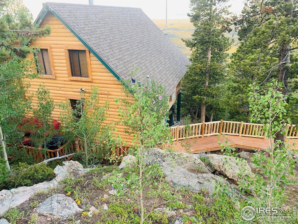 Filing 6 Lot 166. Recently renovated log-sided mountain property, currently occupied year-round. Outstanding views of the Mummy Range which can be seen from all the south and east facing windows. Open great room with woodburning stove. Kitchen with adjoining dining area with patio doors leading out to the deck. Main level bedroom and separate bathroom. Upper level with two bedrooms and bar/entertainment area. Baseboard electric heat throughout with additional individual mini-split AC/Heat units in dining area, main floor bedroom, and upper primary bedroom. Two decks both with spectacular mountain views. Hot tub on lower deck. Versatile shed with wood stove and workspace for hobbies or artist. Off-street parking for owner and guests. Enjoy relaxing on the decks, taking in the fantastic mountain views, hiking/biking, fishing in stocked lakes/ponds, and National Forest access nearby. Community water system with 1200 gallon cistern for year-round water and 2000 gallon septic vault. Don't this opportunity to own a piece of the Colorado high country with breathtaking views.