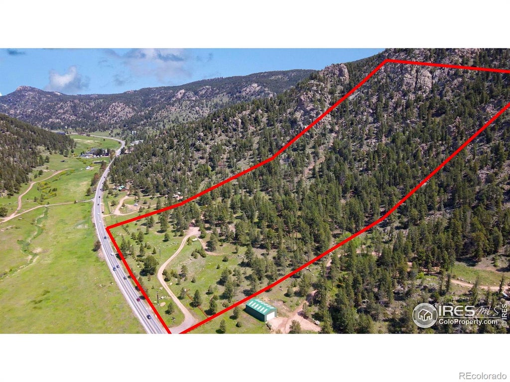 Looking for your dream land to build your Mountain Home on? This is it! 17.5 Acres conveniently located on Highway 36, just 6 miles from Estes Park on a Paved Road up to your Driveway with a Private Gated Entrance. Located above the highway, peace and quiet and serenity can be yours with only the sounds of nature. Currently there is a small portable one room Cabin with a Bathroom, Kitchen and Covered Large Trek Deck for Camping and BBQ's. There is also a sturdy Metal Shed for your tools and Outdoor Equipment Storage. Phenomenal Views All Around! Pines, Aspens, Boulders and gigantic Rock Outcroppings--What a fun place to explore and enjoy! Valuable 720' deep Water Well on the land that pumps out 2G per minute as well as a 1500 Gallon Cistern Holding Tank! 1,000 Gallon Septic Tank is also already installed with Leach Field. The property runs from the highway, right up the mountain and to the boundary fences on either side. Backs to National Forest. Both the Cabin and the Bathroom are considered portable, but included.