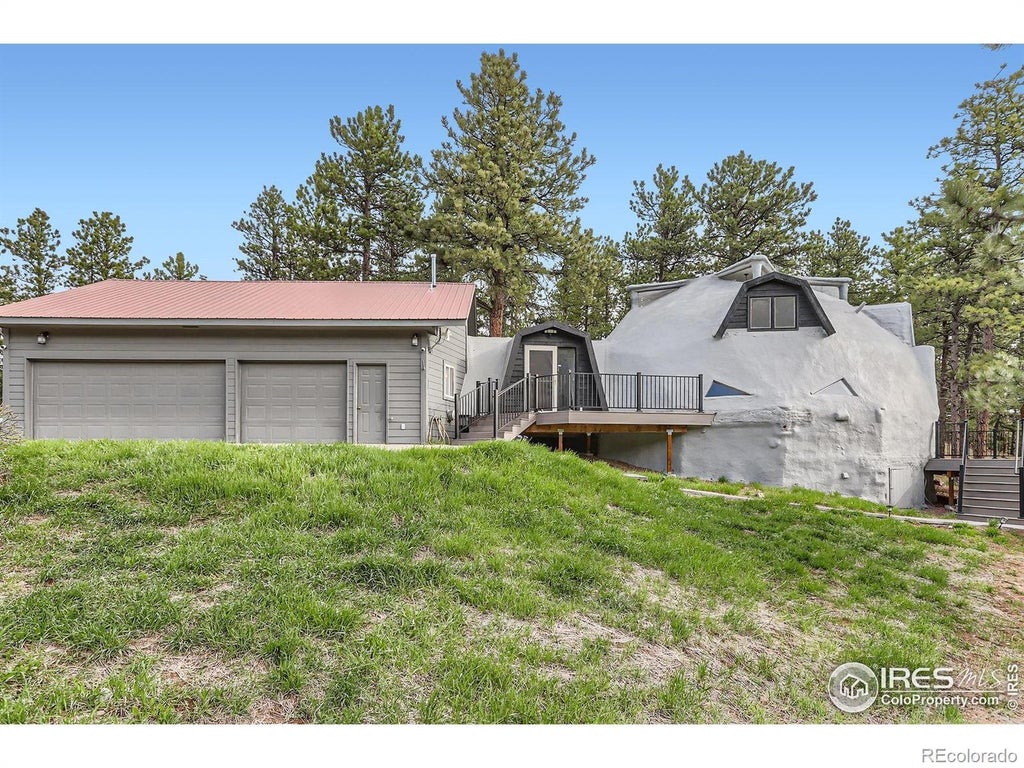 Just a mere 15-20 minutes driving from downtown Boulder, tranquility awaits you, the new owner, of this architecturally unique home with an enormous deck (over 700 SF of deck!!) for outdoor living and a massive garage (4 spaces total) where workshop use or toy-storage and gear storage abound. Recently remodeled and upgraded to include wood floors and a well designed kitchen with granite island and modern backsplash. Bathrooms have new tile floors. Free-standing wood stove compliments the mountain aesthetic and will warm you through Colorado's seasons. Surrounded by National Forest, this home sits on 2.95 acres. Well positioned, the home takes in southern sun exposure. Priced for amazing value! Wildfire Partners certified. Only 6.8 miles from the edge of Boulder's Eben G. Fine Park. Close by are Boulder County's premier Betasso Preserve and the Switzerland Trail. Live the mountain dream so close to all that Boulder has to offer. Get ECSTATIC about... 387 Millionaire Drive!