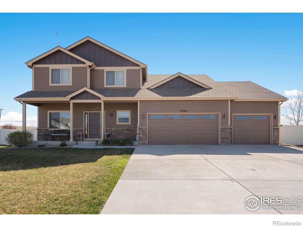 $25,000 PRICE REDUCTION! Well maintained, like new 2 story Sage Home in The Meadows! This 3 bedroom, 4 bath home has just been freshly painted on the exterior and has a covered front porch. For the chef's in the family you will enjoy a kitchen that has spacious granite counters that are perfect for meal prep, warm wood cabinets, a large pantry cabinet and an oversized island. All the high end kitchen appliances are included. The living room has an open airy feel with a 2 story vaulted ceiling. Relax on cozy nights by the gas fireplace. Warm hardwood floors accent the entry, the kitchen, and the dining area. The main level primary bedroom has a coffered ceiling, beautiful 5 piece bath, a walk-shower and spacious walk-in closet. The main level office has wood french doors perfect for privacy when working from home. The laundry is on the main floor with washer and dryer included. Upstairs you will find a large loft/flex space, two more good sized bedrooms and a luxury full bath. The finished basement has a beautiful wet bar with a refrigerator, a large recreation room great for entertaining or watching the game, a 3/4 bath and a huge storage area with shelving for all your gear. All window blinds are included. Central A/C cools the house on hot summer days. The spacious 3 car garage has an epoxy floor and an additional tandem work space. Sip your morning coffee or kick back and enjoy a BBQ on the oversized back patio that is shaded in the afternoon and evening. The large back yard is fenced so your pets can roam free. A sprinkler system makes lawn care a breeze. Enjoy a premium lot on the edge of the subdivision backing to farm land. Original owner has lovingly maintained this quality Sage Home! Popular Rio Grande plan. Easy access to I-25 for commuters and only 15 minutes to Fort Collins. It's easy to show! Quick possession possible. We would love to welcome you home!