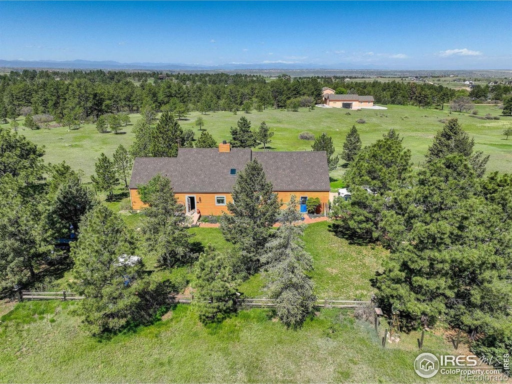 Don't miss this outstanding property on just over five acres in Franktown. Just a short drive to all the amenities of Castle Rock and Parker, enjoy your own slice of paradise in this idyllic location. This truly is Colorado close-to-nature at its best on an incredibly special plot of land ready for adventure. The property's Cape Cod-style two story features a main floor master, spacious and bright living room with stone fireplace, and a bright, eat-in kitchen with granite counters and a farmhouse sink. A separate formal dining room opens onto the west-facing deck with expansive views of the front range. The main floor features an additional bedroom and full bath. Upstairs, you'll find beautiful beamed ceilings and three additional bedrooms. New skylights open up so you can wake to birdsong in the mornings. Two of the upstairs bedrooms feature large walk-in closets and everything is awash in the abundant natural light. An unfinished partial basement provides ample storage space. Mature trees create a secluded-feeling area in the fenced front yard. A fully fenced garden area in the back ensures you can enjoy the local wildlife without them enjoying your hard work. You'll see deer almost daily and the occasional elk. All kitchen appliances included as well as washer and dryer. Riding lawn mower included as well!