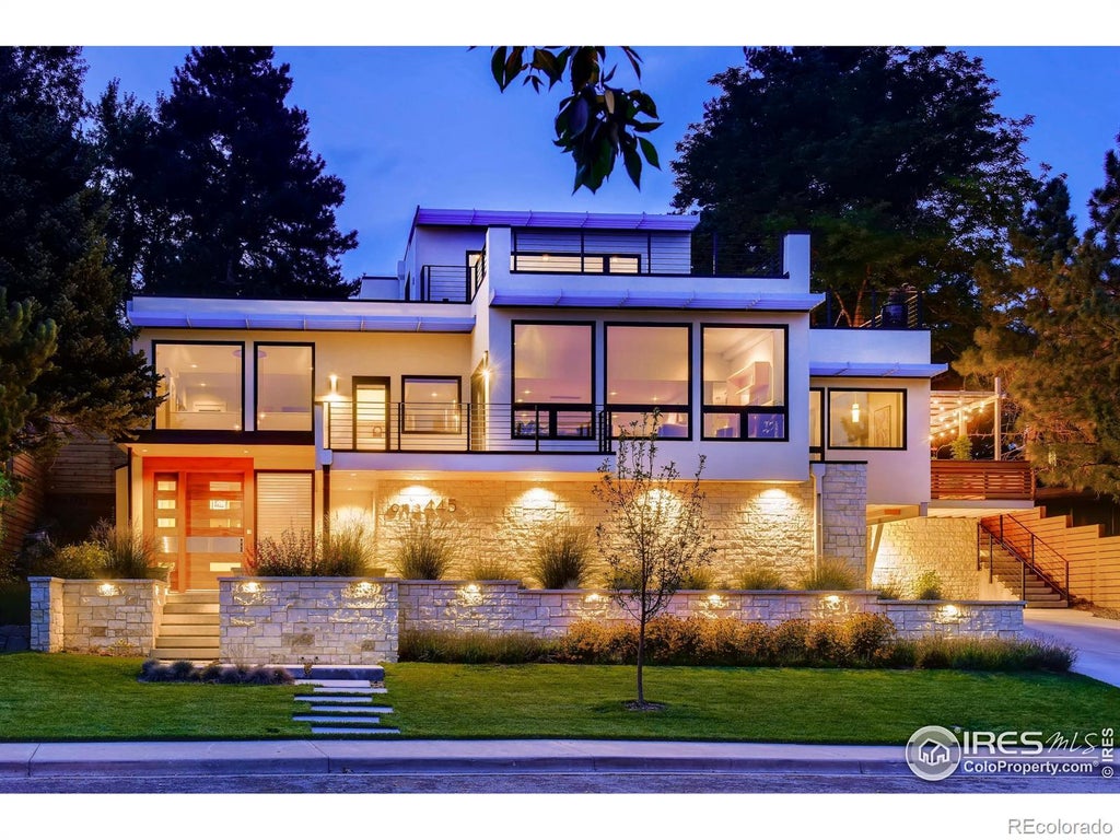 Contemporary Luxury with more than just architectural allure; it's a commitment to sustainability. A symphony of innovative systems converges for efficiency. Passive solar design, high-efficiency HVAC, "Tuned" Energy Star windows, foam insulation, and LED illumination. Elevate your lifestyle in a world where innovation meets luxury, where panoramic vistas and intimate moments coexist. Welcome to a reimagined reality where architectural ingenuity dances with nature's beauty. Nestled amidst towering trees, this home exudes a harmonious fusion of modern design and the tranquility of its hillside perch. Limestone-clad walls define the lower level, a stunning contrast to the ethereal cantilevered spaces that float above. The custom mahogany and steel front door opens into a bright foyer that seamlessly connects to the upper spaces. Floating stairs carry you upwards to the heart of the house. Breathtaking mountain vistas stream through the expansive windows and spill onto the decks, forging a seamless connection with the outdoors. The main floor connects a gourmet kitchen and sun-soaked breakfast nook with an elegant dining room and an airy great room. A contemporary double-sided gas fireplace anchors these social spaces, a beacon of warmth and sophistication. Every turn reveals a new delight. A meticulously designed home office offers tranquil workspace. Ascend further to discover a cozy family room, a cinematic haven for cherished moments. As day turns to dusk, the bedroom level unveils its treasures, each room a sanctuary of serenity. In the primary bedroom a sweeping window seat offers a million-dollar view of the Flatirons. The primary bathroom is an oasis of modern luxury, illuminated by skylights and boasting a floating vanity, with a hidden window that frames the iconic Flatirons.