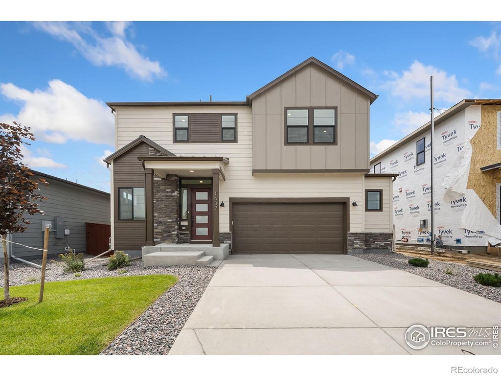 Builder Incentive of up to 6% when using preferred lender could provide approx. $46K towards allowable closing costs/prepaids and rate buy down. This can save you hundreds of dollars each month! Plan 5 at Festival at RainDance by Trumark Homes is a contemporary two-story home offering 3,079 Sq. Ft. of living space with 4 bedrooms and 3.5 baths an oversized two car garage and finished basement. The home features an inviting porch with an office and powder room off the front of the home. Beyond the entrance hall and foyer is the gourmet kitchen featuring a spacious walk-in pantry, ample storage, and a center preparation island which overlooks the dining and great rooms. The kitchen includes 42" deluxe white shaker style cabinetry, quartz countertops with tile backsplash, stainless steel appliance package with 5-burner gas cooktop, convection oven, built-in microwave, and dishwasher. This room connects to the large covered outdoor deck for easy entertaining. Upstairs you'll find a multi-functional loft, two secondary bedrooms with shared bath, and laundry room with sink. The primary suite offers a luxurious, spa-like bathroom with dual sinks, walk-in shower, and an expansive walk-in closet. The basement is conveniently finished with a bedroom, bath and large media room for movie and game nights. The home features LVP flooring throughout the main level, luxurious carpet in bedrooms, spacious 10-foot ceilings on the main floor and 9-foot ceilings on the upper floor and basement, tankless water heater, AC, insulated steel garage door, and much more! Neighborhood amenities of 15 miles of trails, orchards, and trash/recycling are included in your yearly master HOA dues of $300.00. Membership to the Raindance pool is optional and currently $510/year; there are also other membership options combining amenities in Raindance and nearby Water Valley - "WaterDance"! Trumark Online Sales Counselor, Brooke Bails, can be reached at 720.556.8422 or bbails@trumarkco.com