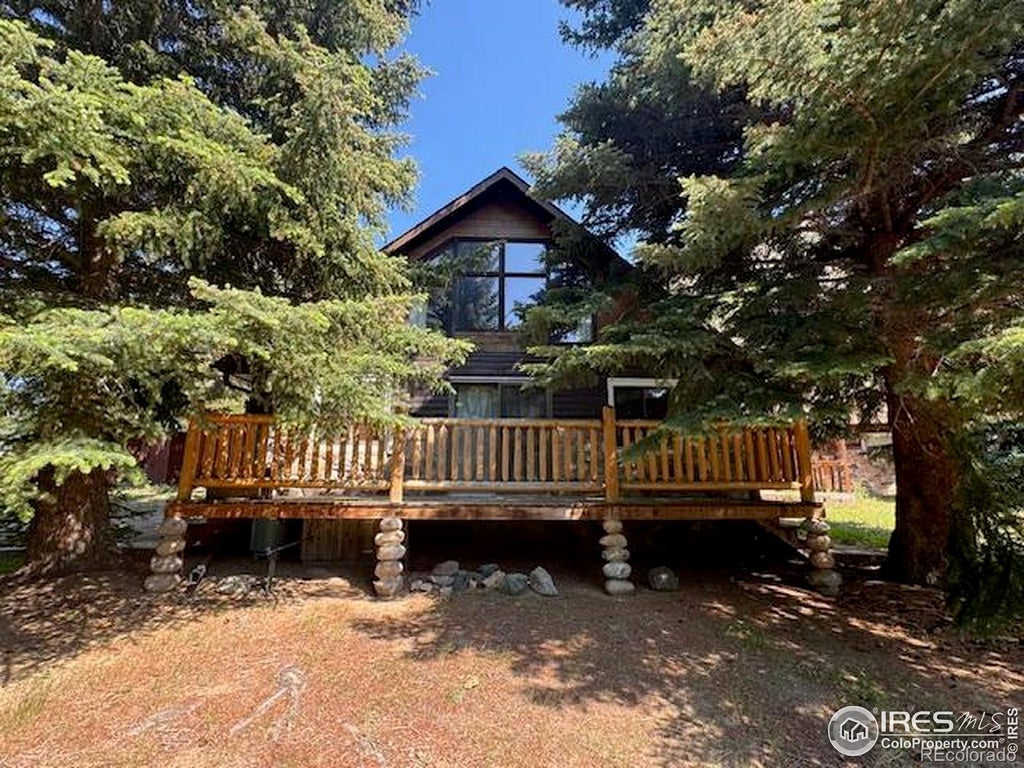 If the mountains are calling you, this adorable cabin is for you. Enjoy year round access with all the amenities of phone, electric, satellite internet, Directv, well and a septic. Nestled in the pines on 4 lots totaling .95 acres, this timber frame/log cabin has Poudre River access and Hasken-Fry water rights for lawn irrigation. Warm wood floors, open beams, 2 antler chandeliers, and wood plank ceilings add charm to the interior of the cabin with a fireplace with woodstove insert for cozy nights by the fire. The kitchen has all appliances included, a breakfast bar and an antique cook stove. The main level has a primary bedroom, 1 1/2 baths, and a mud/laundry room with washer and dryer included. On the second level you will find a spacious loft bedroom. In addition to the main house, there is a 605 sq. ft bunkhouse/shop with a wood stove, room for overnight guests and a 1 car attached garage. Spend evenings stargazing on the patio. A large deck has views of the mountains. Store your gear in the 218 sq. ft shed. Fish, hike and enjoy wildlife right outside your door. Great family retreat or year round home!